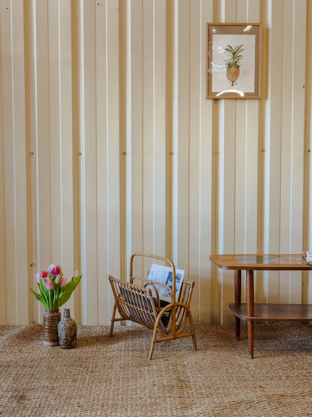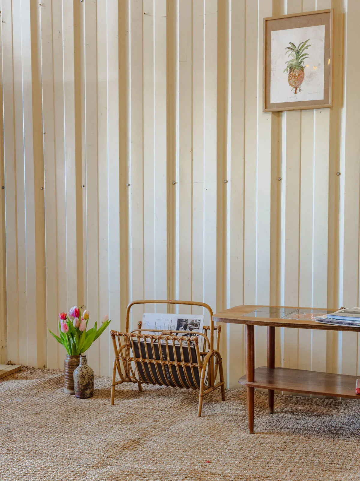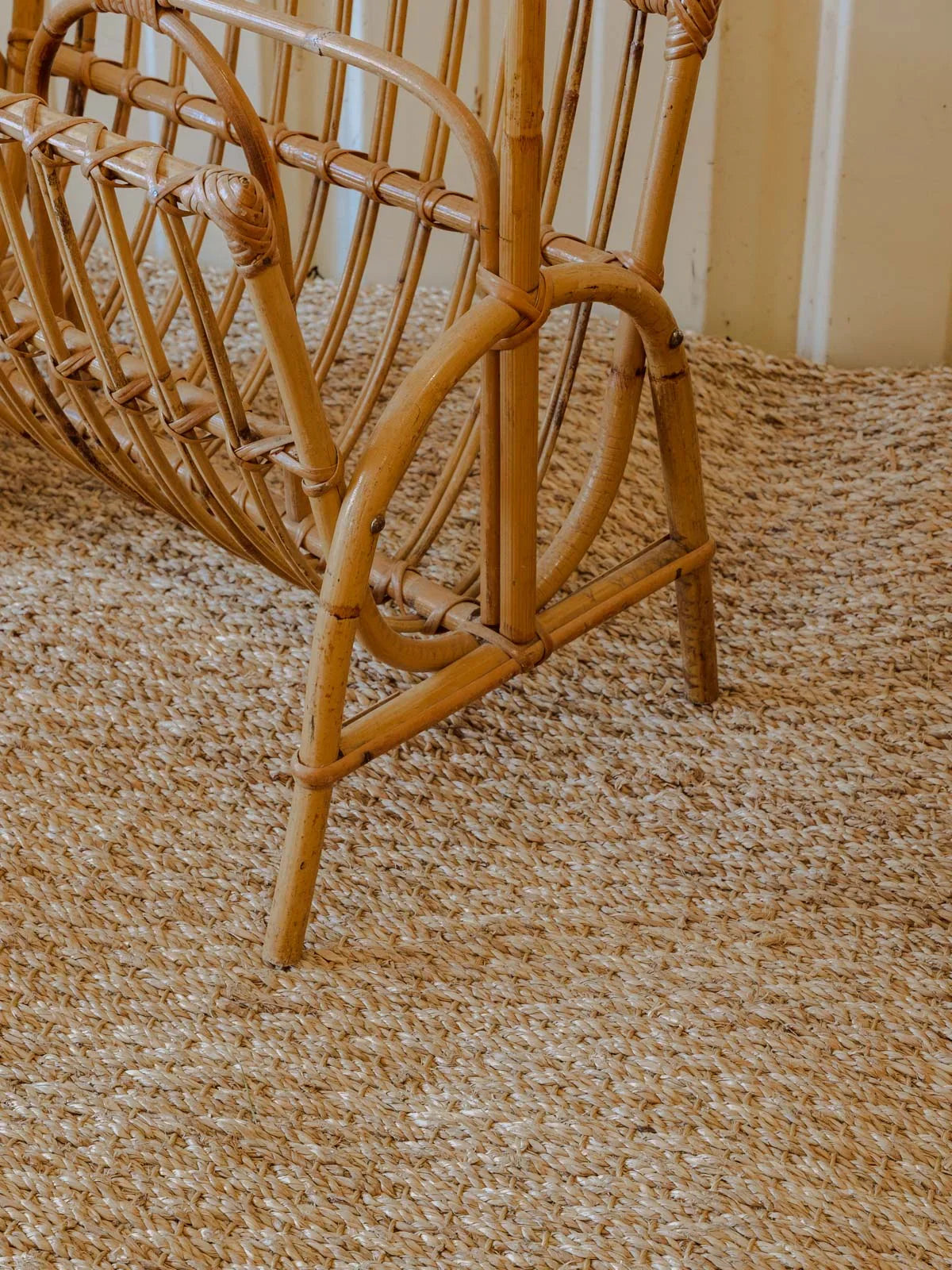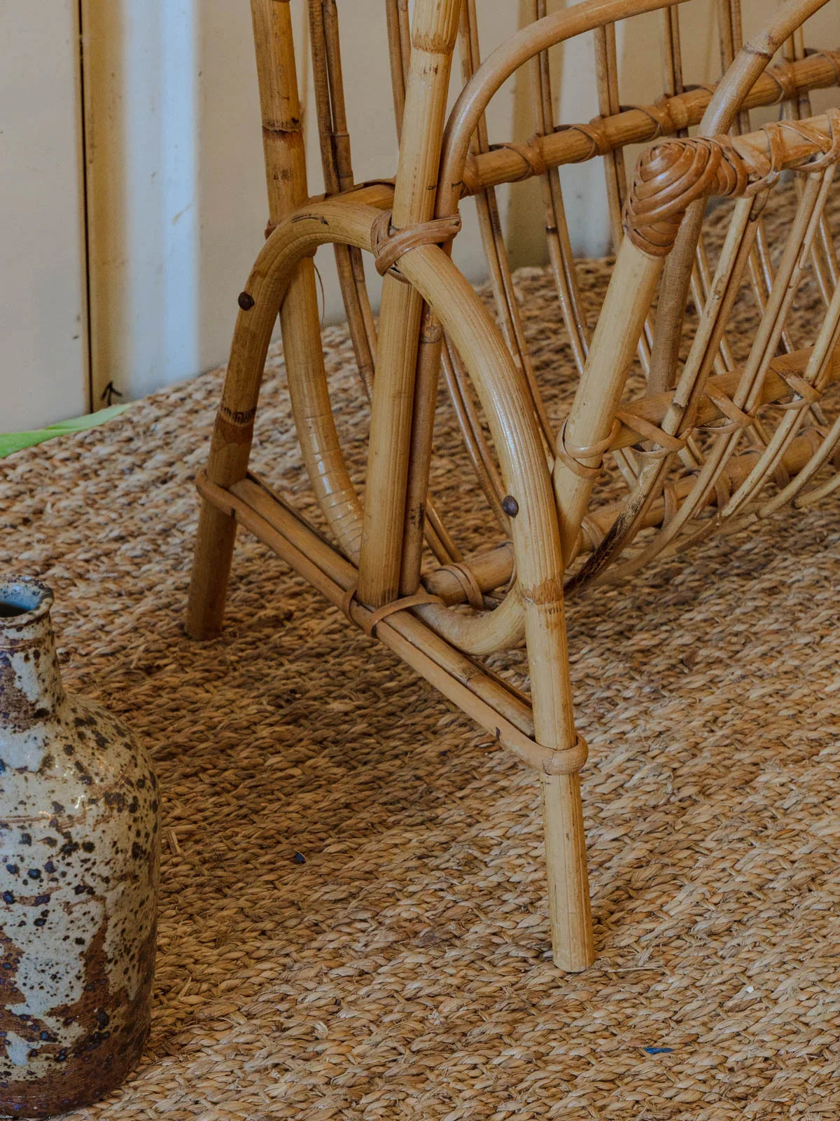 Invitez ce porte-revues en rotin au charme naturel dans votre salon : sa silhouette élancée et sa structure légère offrent un rangement élégant pour magazines et journaux sans encombrer l'espace. Le tressage artisanal et la teinte chaleureuse du rotin insufflent une atmosphère douce et organique, idéale près d'un fauteuil de lecture ou dans une entrée pour un accueil soigné. Quelques traces du temps présentes.