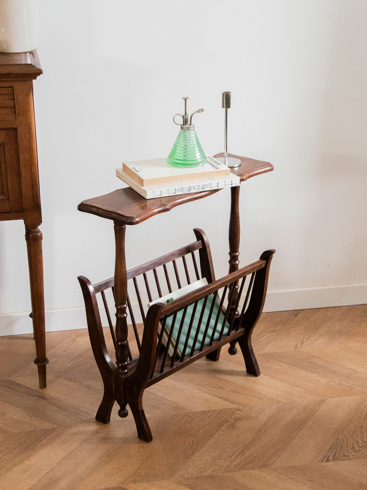 Ajoutez une touche d'élégance à votre intérieur avec ce porte-revue/table d'appoint en bois délicatement travaillé. Sa tablette pratique offre un espace de rangement idéal pour vos magazines, livres ou objets décoratifs, tout en s'intégrant harmonieusement dans n'importe quelle pièce. Chaque pièce est unique grâce à son bois au grain distinct, apportant un charme naturel et authentique à votre décor. Un choix parfait pour allier esthétique et fonctionnalité !