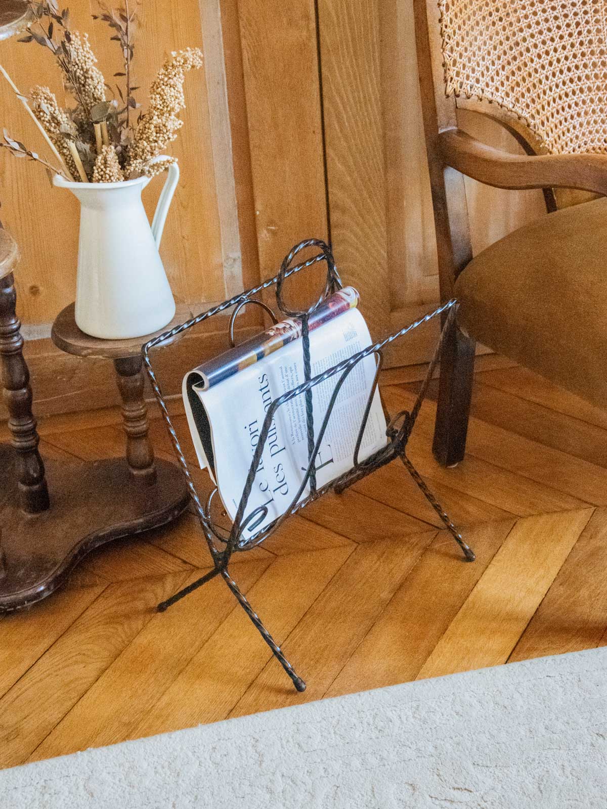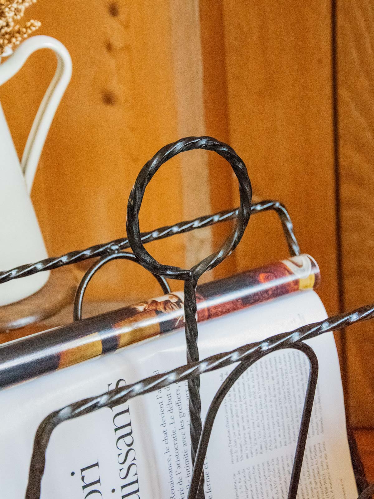 Découvrez ce porte-revues en métal noir torsadé, au dessin aérien qui mêle structure solide et délicatesse sculpturale. Sa poignée facilite les déplacements tandis que ses proportions élancées s'intègrent naturellement dans un salon, une entrée ou un bureau, accueillant journaux, magazines et revues avec élégance. La finition noire confère une allure contemporaine et discrète, capable de souligner un intérieur industriel ou plus raffiné. Objet pratique et décoratif, il crée une ambiance ordonnée et chaleureuse.