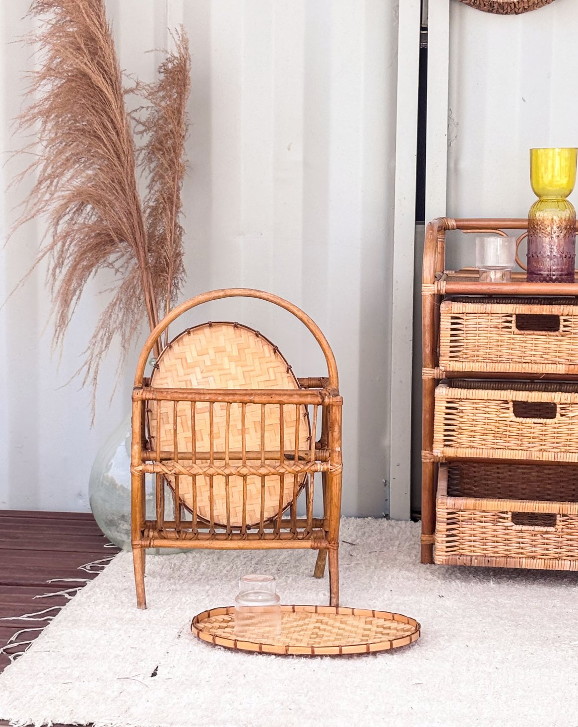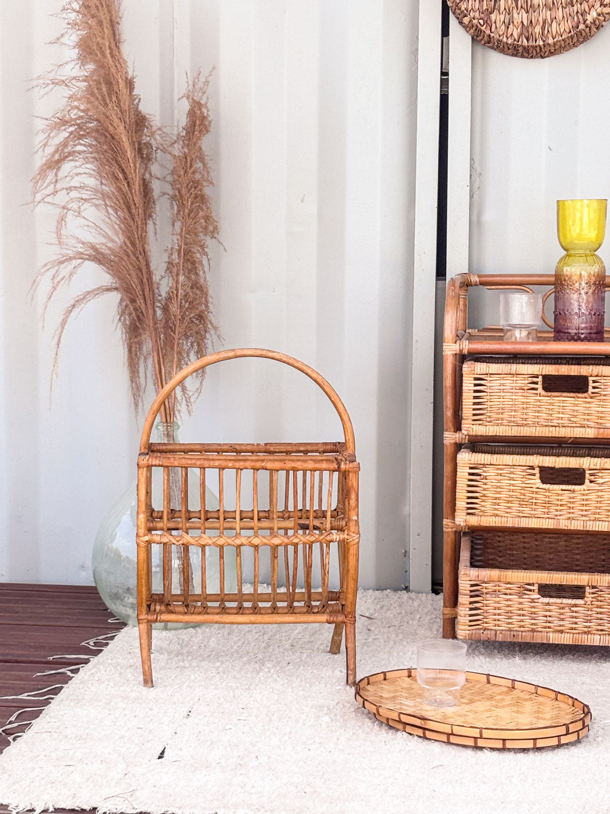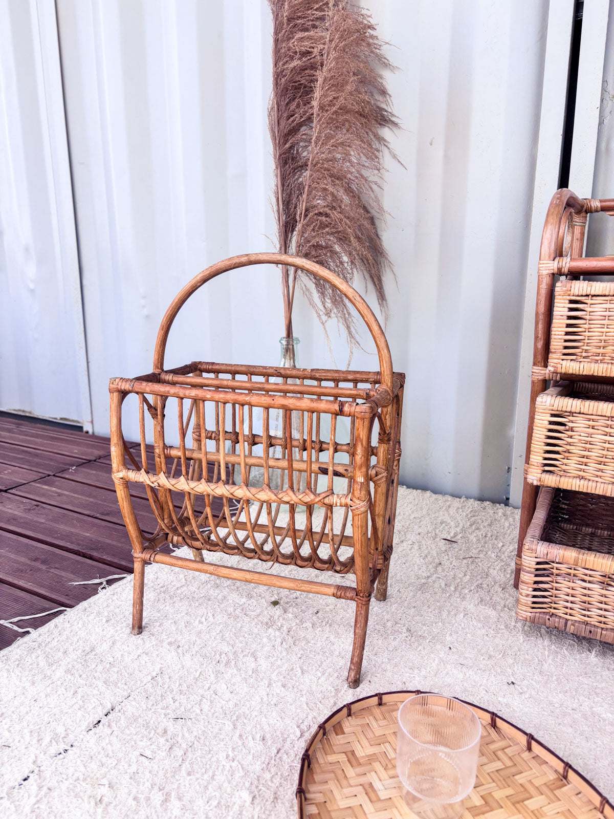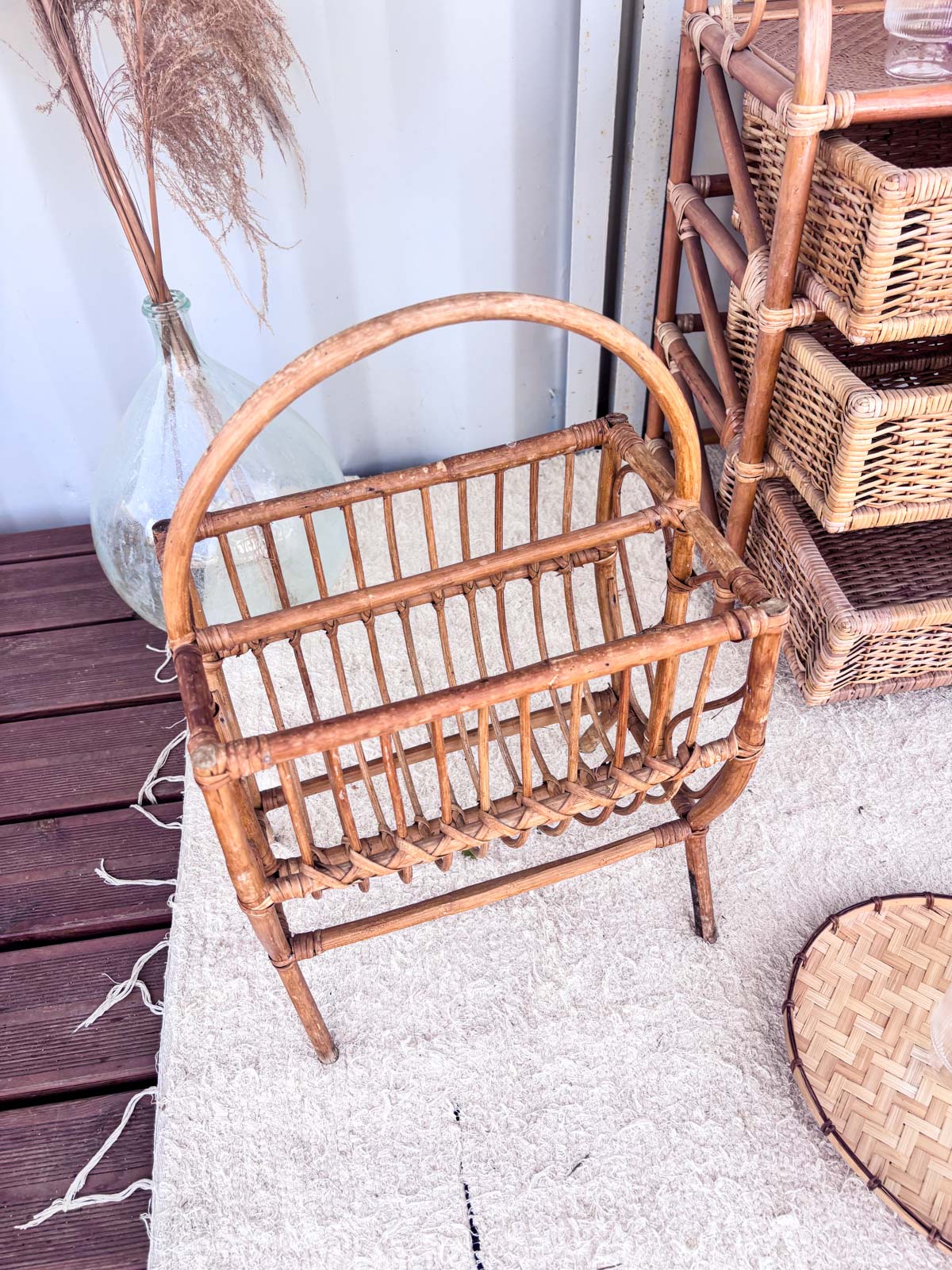 Ajoutez une touche rétro à votre intérieur avec ce porte-revues en rotin vintage. Fabriqué avec soin, il allie élégance et fonctionnalité, offrant un rangement pratique pour vos magazines et livres préférés. Son design en rotin tressé apporte chaleur et authenticité à votre décoration, tout en étant léger et facile à déplacer. Parfait pour un salon ou une chambre, ce porte-revues est un incontournable pour les amateurs de style vintage.