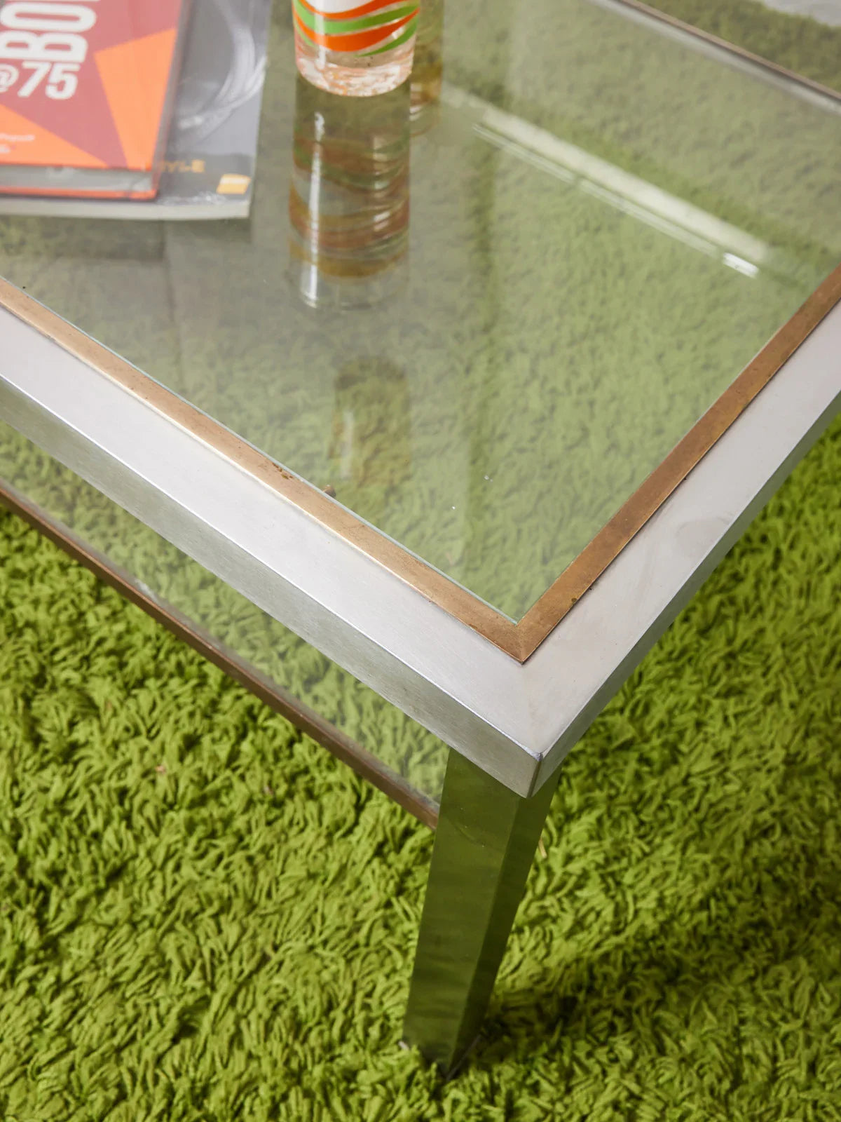 Sublimez votre salon avec cette table basse en laiton et aluminium brossé, où le mariage du métal chaud et du métal léger crée une silhouette raffinée et contemporaine. Sa structure équilibrée propose un plateau accueillant pour tasses, livres et objets décoratifs, tandis que l'aluminium lui confère une légèreté visuelle et une grande résistance au quotidien. Parfaite pour instaurer une ambiance chaleureuse et graphique, elle s'intègre aussi bien dans un intérieur moderne que dans un décor plus sobre et élégant.