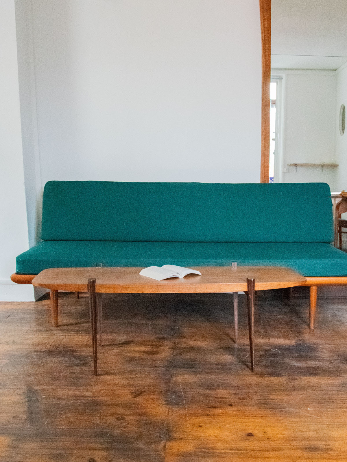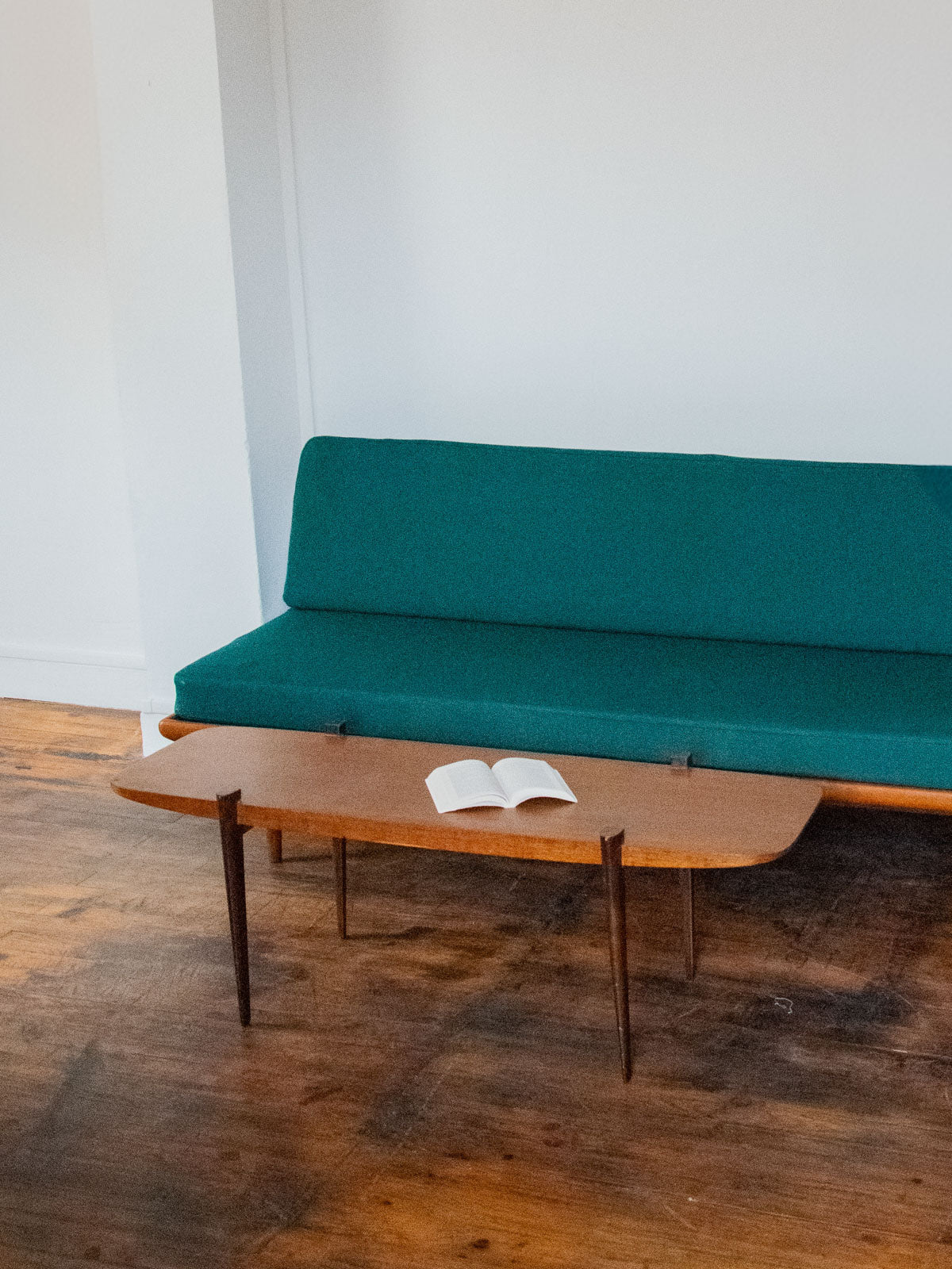 Table basse scandinave en teck, au design épuré et intemporel. Son plateau rectangulaire met en valeur la chaleur naturelle du bois, tandis que ses pieds, dépassant légèrement sur le plateau, apportent une touche graphique et originale. Une pièce élégante et fonctionnelle, idéale pour sublimer un salon au style nordique.