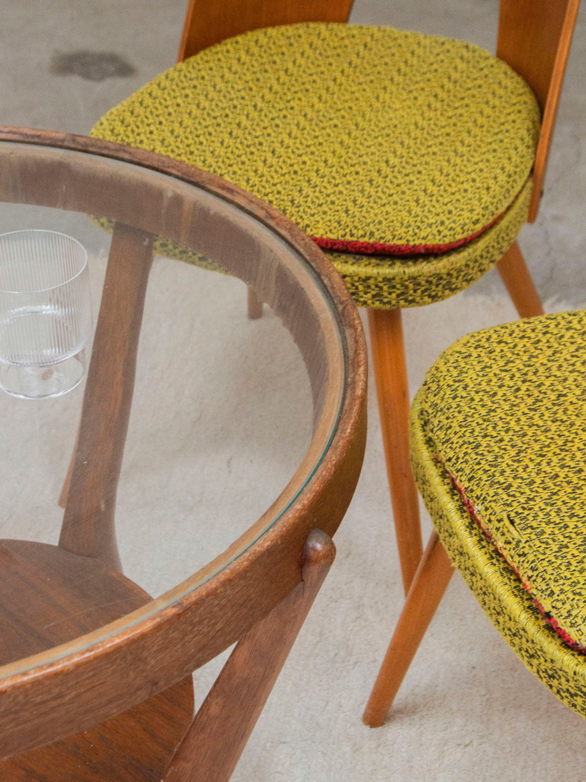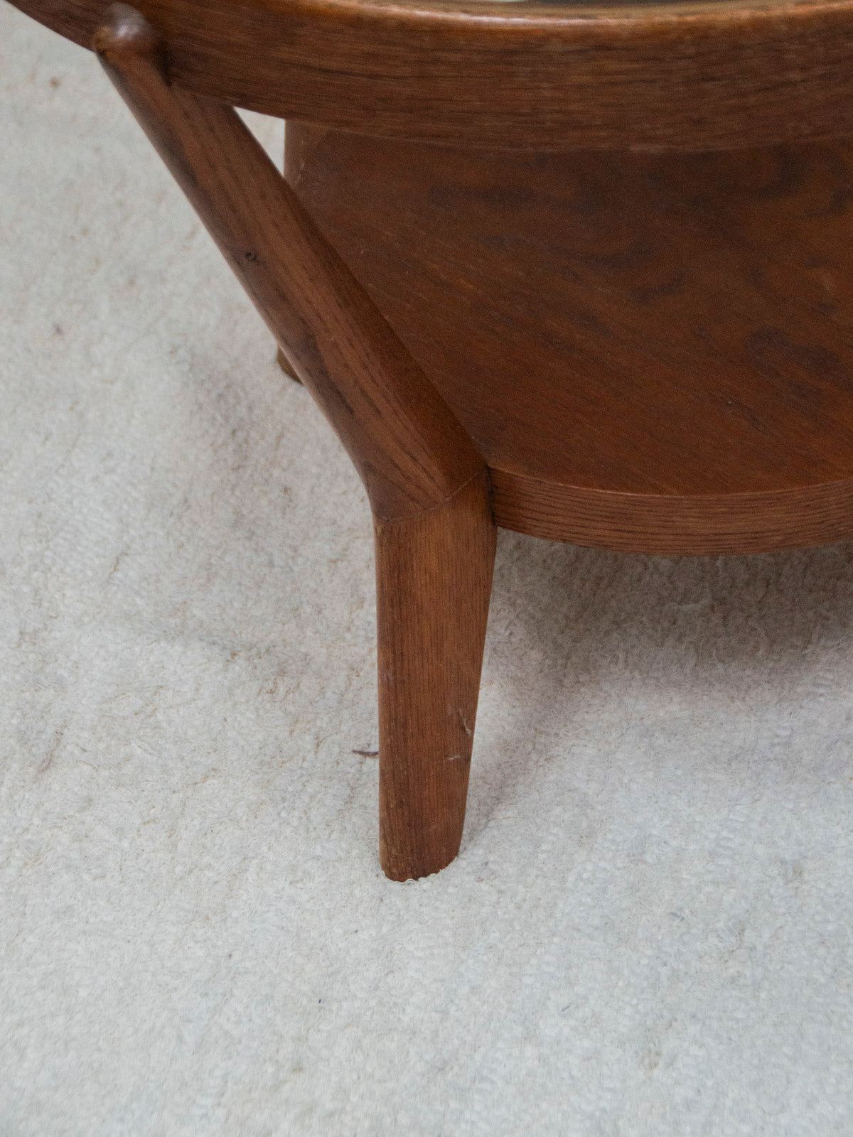 Adoptez cette table ronde au plateau en verre transparent et à l'étagère inférieure en bois clair, une pièce qui marie légèreté et chaleur. Son plateau vitré laisse passer la lumière tandis que l'étagère basse offre un rangement discret pour livres et objets, idéale pour un salon ou un coin lecture. Les quatre pieds finement travaillés assurent stabilité et élégance, soulignant des proportions compactes et accueillantes. Ambiance contemporaine et tactile qui invite à la convivialité. Traces d'usures légères.