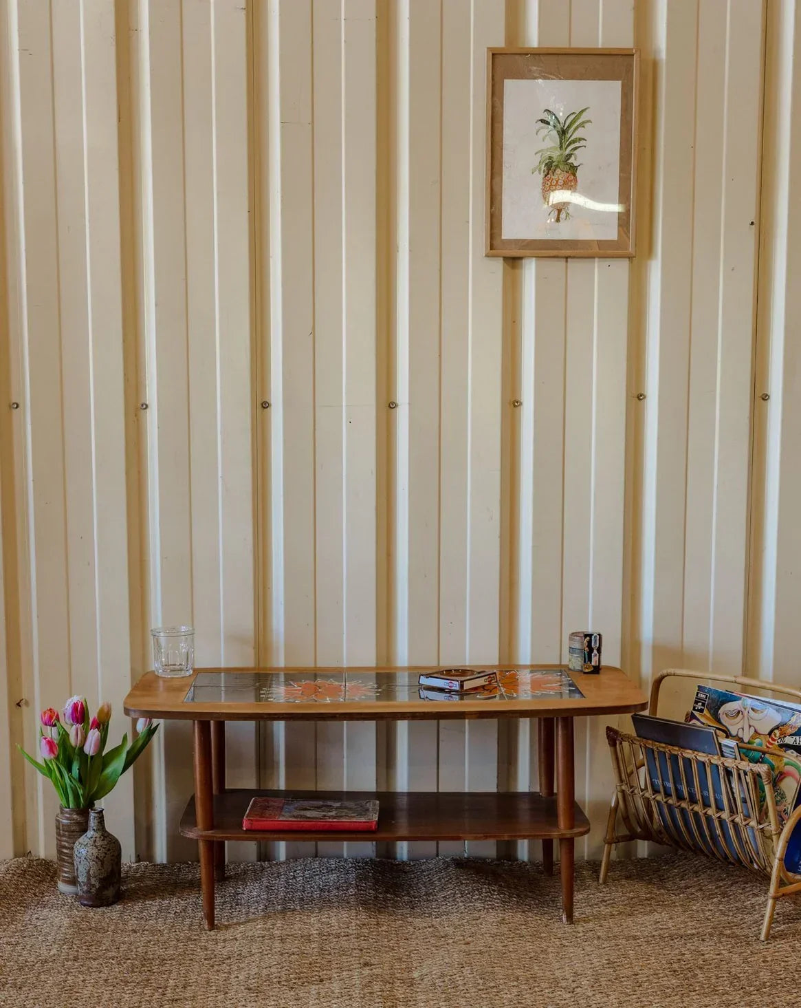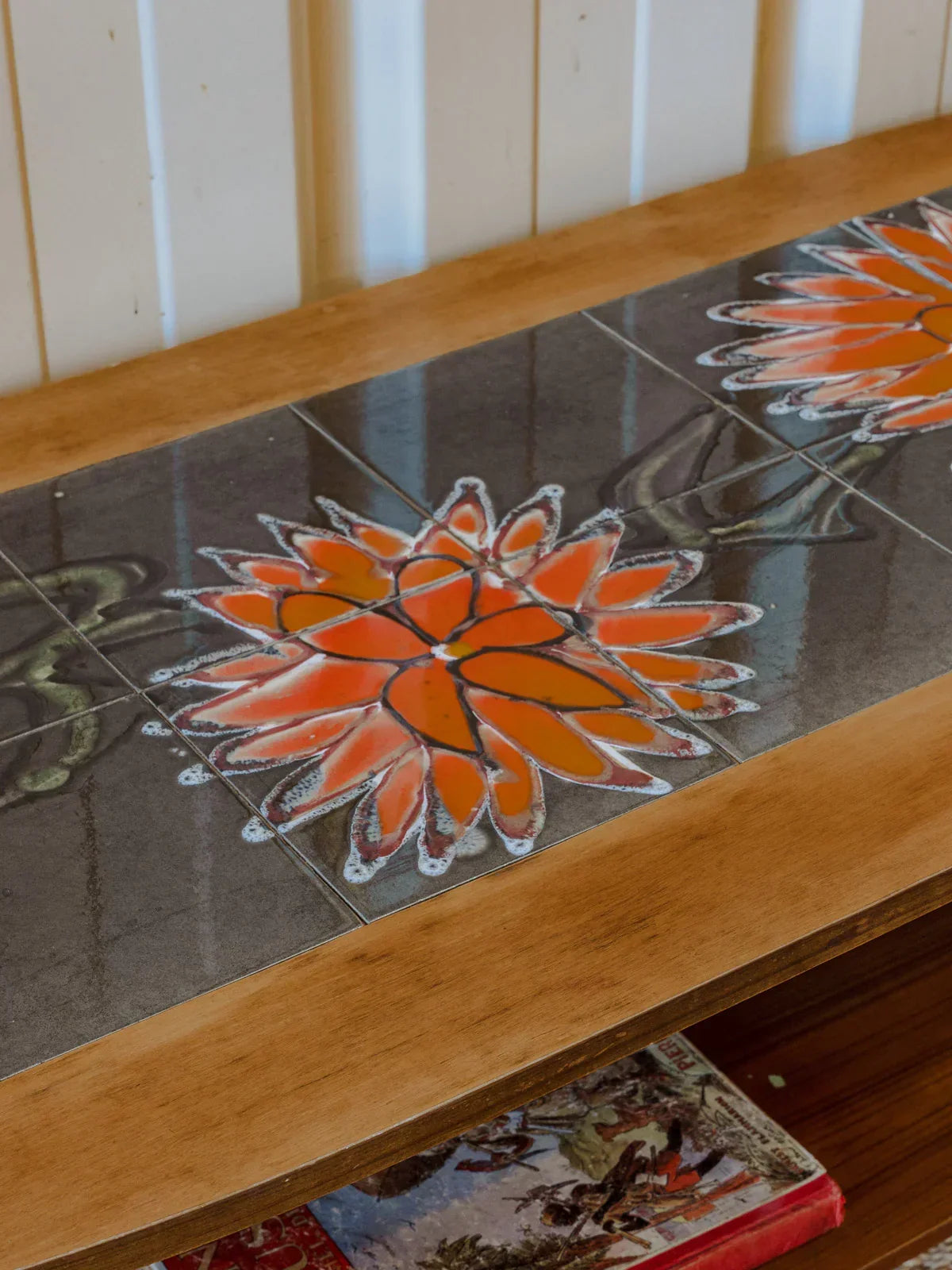 Ajoutez une touche d'élégance naturelle avec cette table basse en bois au plateau décoré de délicates fleurs peintes, un détail artisanal qui capte le regard. Son sous-plateau propose un rangement discret pour magazines, livres ou plaids, et le veinage chaleureux du bois apporte une patine authentique. Ses proportions s'intègrent facilement à un salon cosy pour créer une atmosphère conviviale et raffinée. Quelques traces du temps présentes.