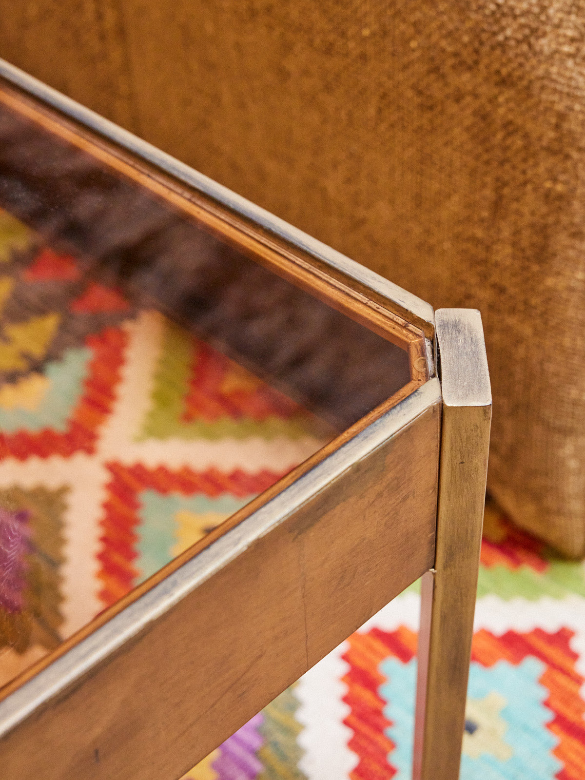 Sublimez votre salon avec cette table basse carrée en laiton et verre fumé, au design élégant et intemporel. Le laiton chaud souligne des lignes nettes tandis que le plateau en verre fumé diffuse une lumière tamisée, révélant vos objets et livres avec sobriété. Ses proportions équilibrées conviennent à un coin salon ou une alcôve, offrant une surface d'appoint stable et raffinée pour le quotidien. Une pièce qui installe une ambiance feutrée et contemporaine.