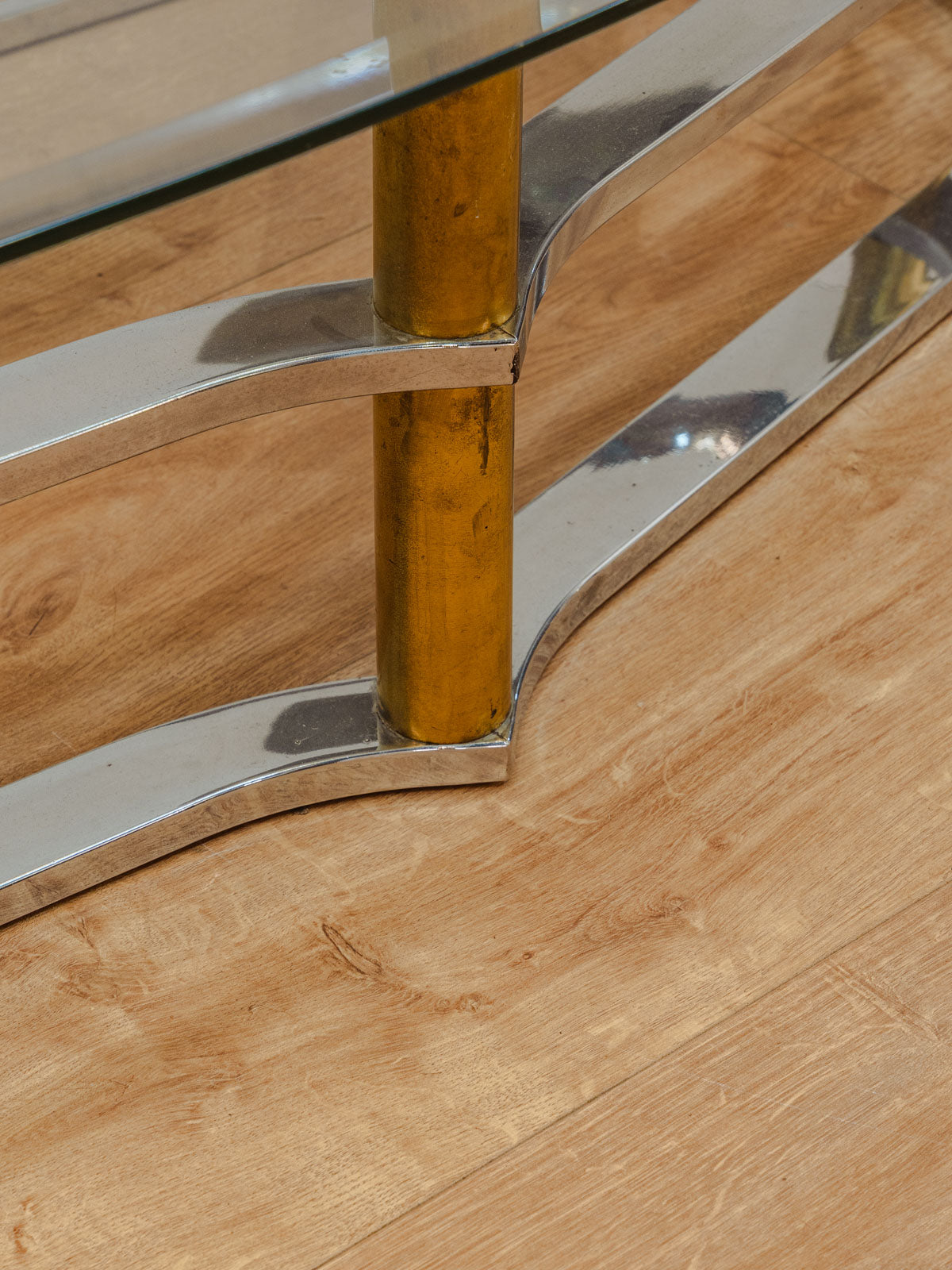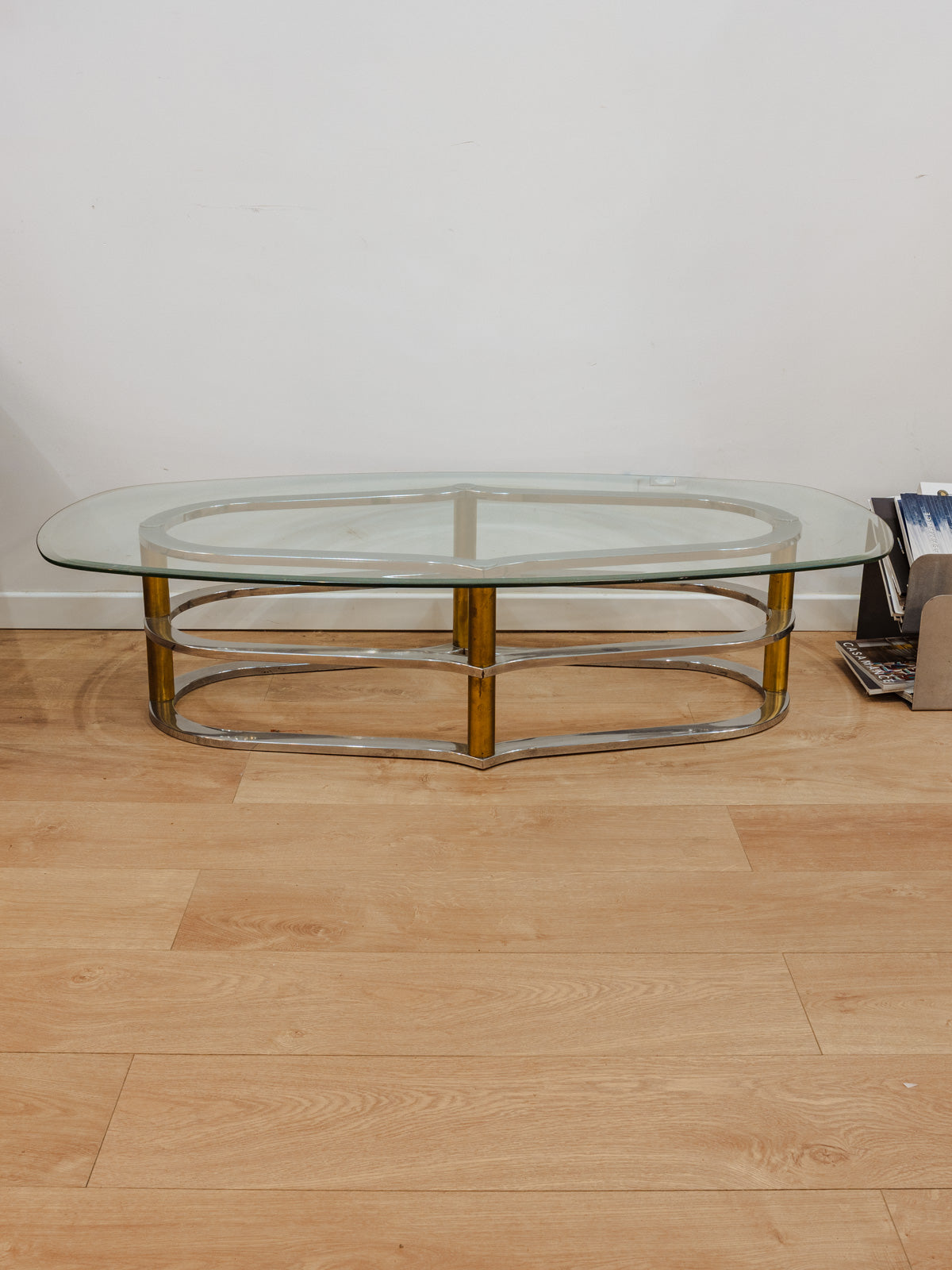 Ajoutez une note contemporaine à votre salon avec cette table basse ovale au plateau en verre et pieds chromés, dont les proportions ouvrent l'espace sans alourdir la pièce. Le plateau transparent met en valeur livres et objets décoratifs tandis que la structure chromée apporte une allure légère et graphique. Idéale pour un séjour épuré, elle crée une ambiance lumineuse et raffinée, parfaite pour les réceptions ou les moments de détente. Quelques traces du temps présentes.