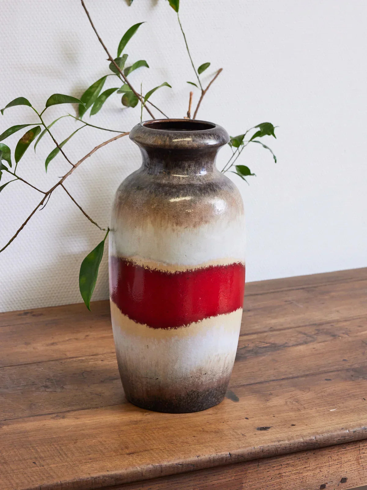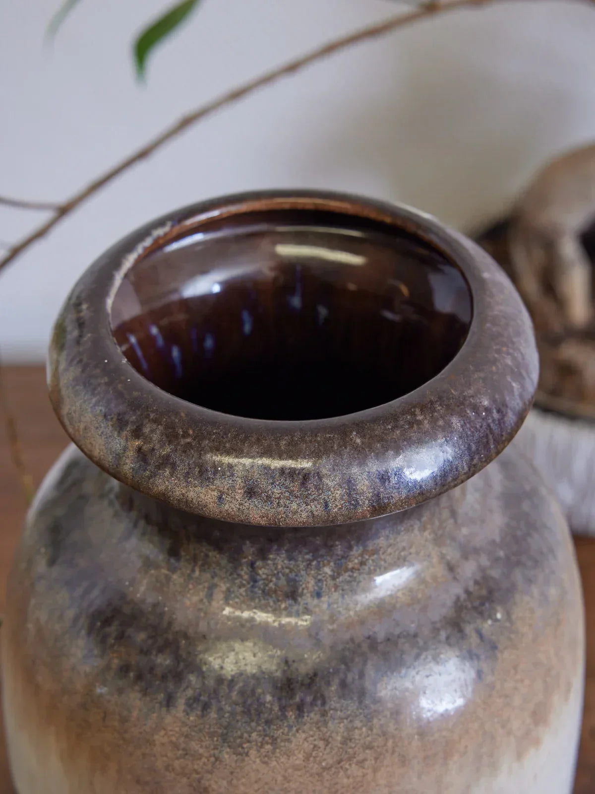 Ajoutez une céramique West Germany au charme rétro, sculptée avec une glaçure riche qui capte la lumière et évoque le design du milieu du XXe siècle. Sa silhouette équilibrée et ses proportions généreuses en font une pièce idéale pour animer une étagère, un buffet ou servir de centre de table, apportant une note chaleureuse et artistique à l'intérieur. Lignes vintage et texture émaillée invitent au toucher et créent une ambiance à la fois sobre et inspirée.