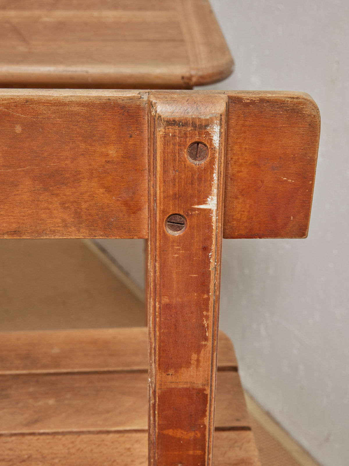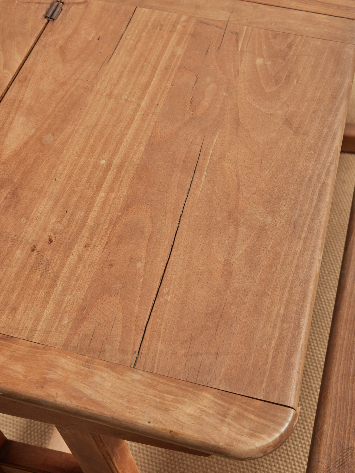 Découvrez ce pupitre en bois pensé pour deux enfants, aux lignes simples et à l'assise partagée qui invite au dessin, à la lecture et aux jeux à deux. Le bois poncé lui confère un toucher doux et une allure naturelle, apportant chaleur et sobriété à une chambre ou un espace d'activités. Sa largeur généreuse permet de s'installer côte à côte, favorisant la convivialité et le travail en duo. Légères traces du temps présentes.