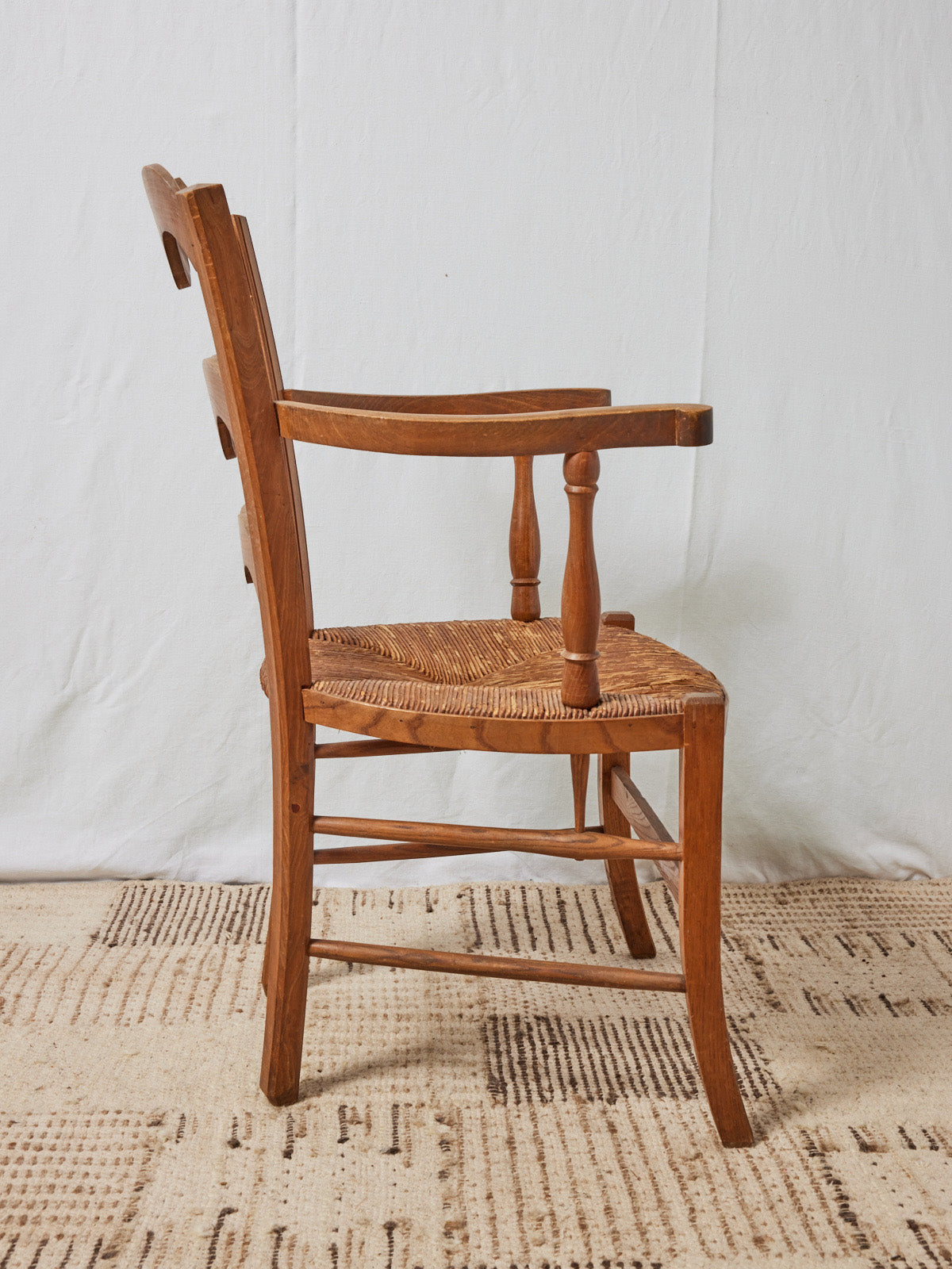 Adoptez ce fauteuil campagne en bois à l'assise en paille, où la simplicité des matériaux raconte une histoire d'atelier et de savoir-faire. Sa structure en bois aux lignes sobres et sa paille tressée offrent un confort accueillant pour un coin lecture, une entrée ou une véranda, tout en apportant une présence chaleureuse à la pièce. Mélange de rusticité et d'élégance discrète, il crée une ambiance authentique propice à la détente.