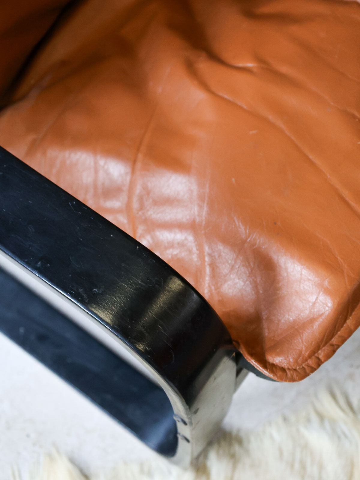 Adoptez ce fauteuil Poäng d'Ikea des années 70 au cuir camel et à la structure en bois foncé, un équilibre élégant entre esprit vintage et lignes épurées. Son assise généreuse et son appui‑tête réglable invitent à la lecture ou à la pause, tandis que ses proportions compactes le rendent facile à intégrer dans un salon ou un coin détente. Le cuir patiné et la structure chaleureuse créent une atmosphère accueillante et raffinée. Légères craquelures sur le cuir.