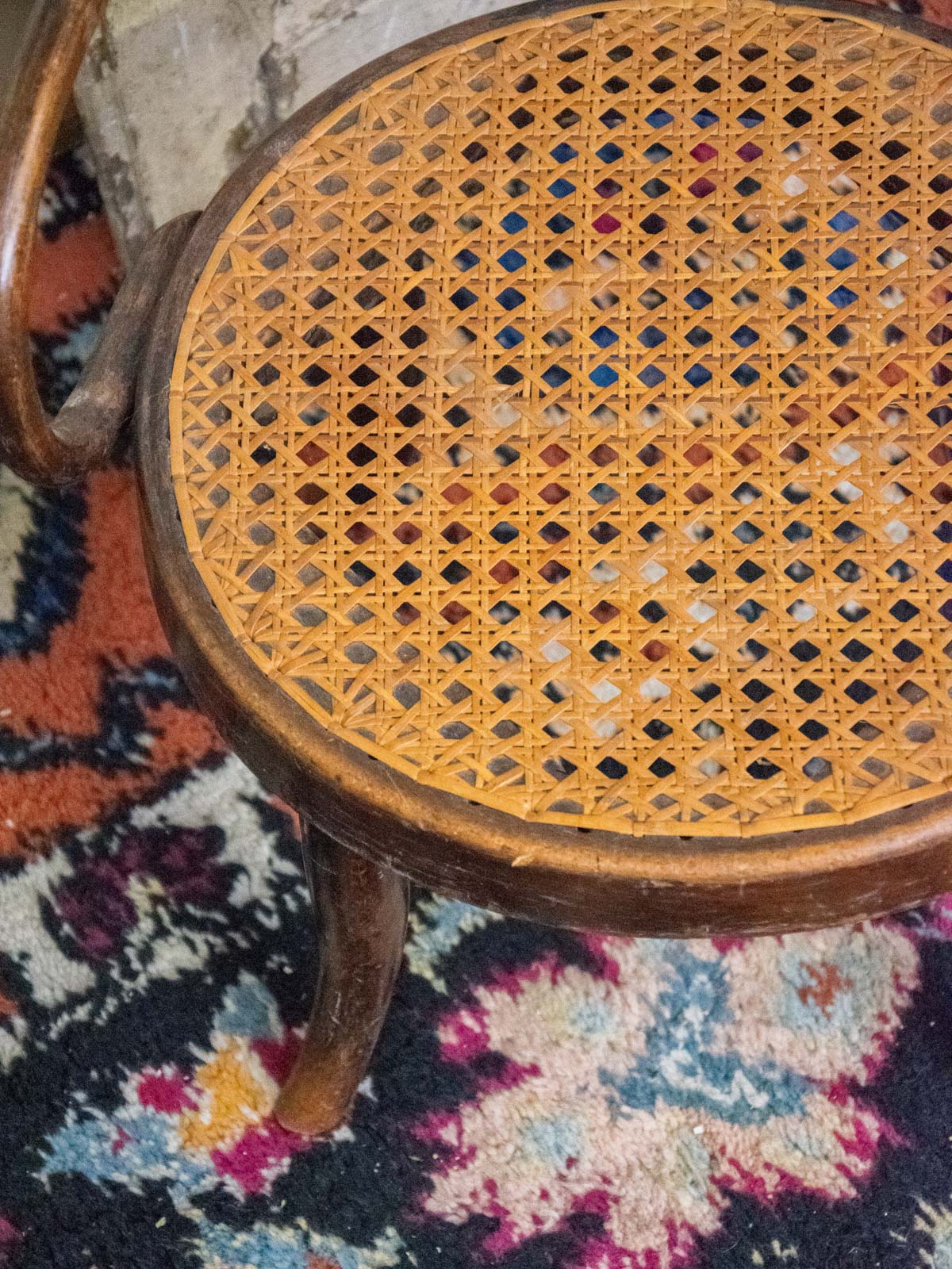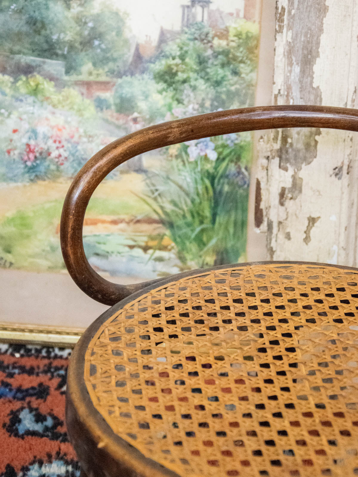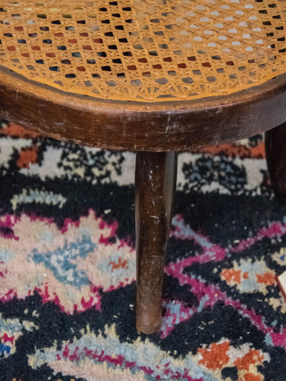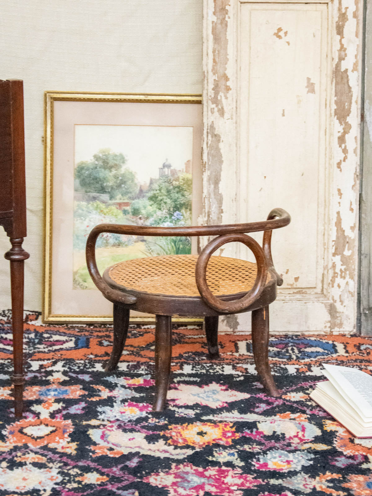 Adoptez cette petite chaise Thonnet des années 1900 en bois foncé, parfaite pour une chambre d'enfant ou comme assise d'appoint dans un coin lecture. Son cannage propre offre un confort délicat et met en valeur l'élégance sobre de ses lignes anciennes, tandis que ses proportions compactes la rendent facile à intégrer dans des intérieurs contemporains ou classiques. Elle insuffle une atmosphère intime et poétique, évoquant la maison d'antan. Légères traces du temps et un petit éclat discret.