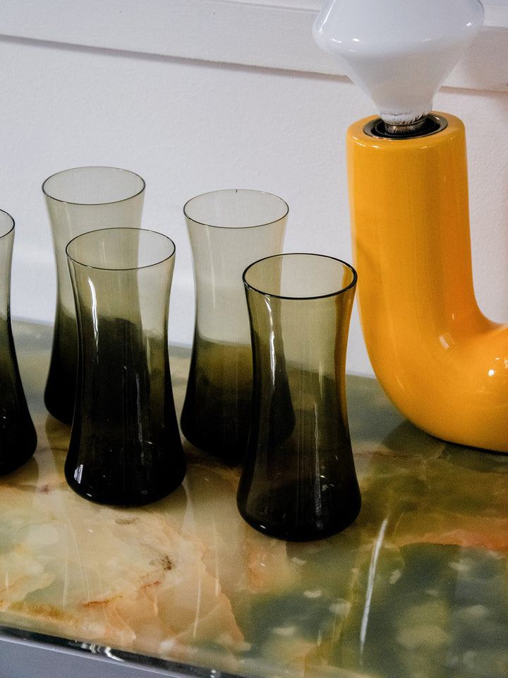 Ajoutez une touche d'élégance à votre intérieur avec cet ensemble de verres en verre fumé. Leur teinte subtile et leur design raffiné en font des pièces aussi pratiques que décoratives. Parfaits pour vos boissons du quotidien ou pour habiller une jolie table, ils s’intègrent naturellement dans tous les styles d’univers, du plus rétro au plus contemporain.