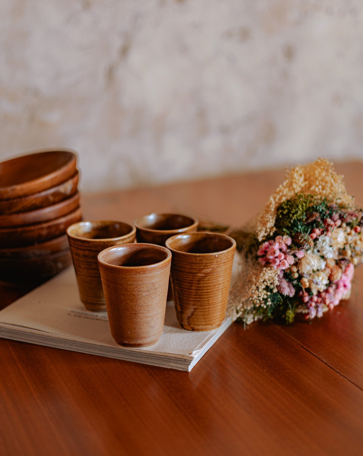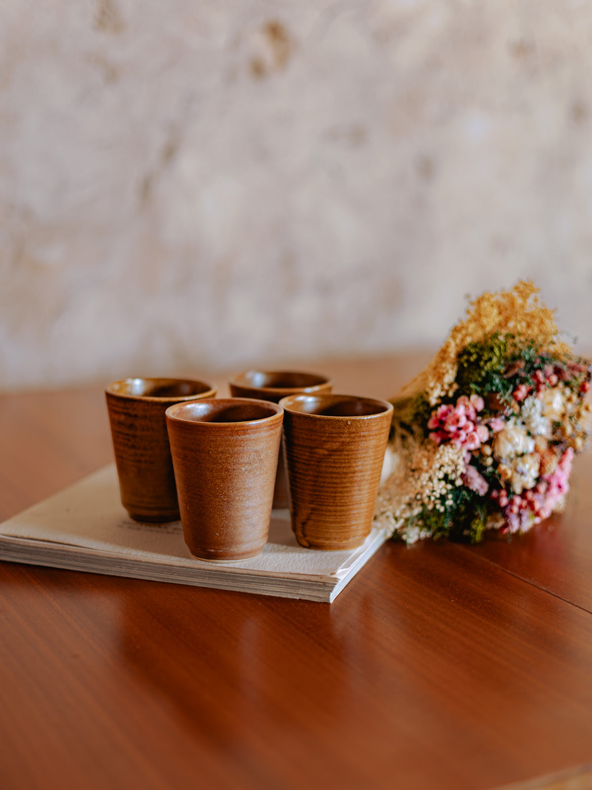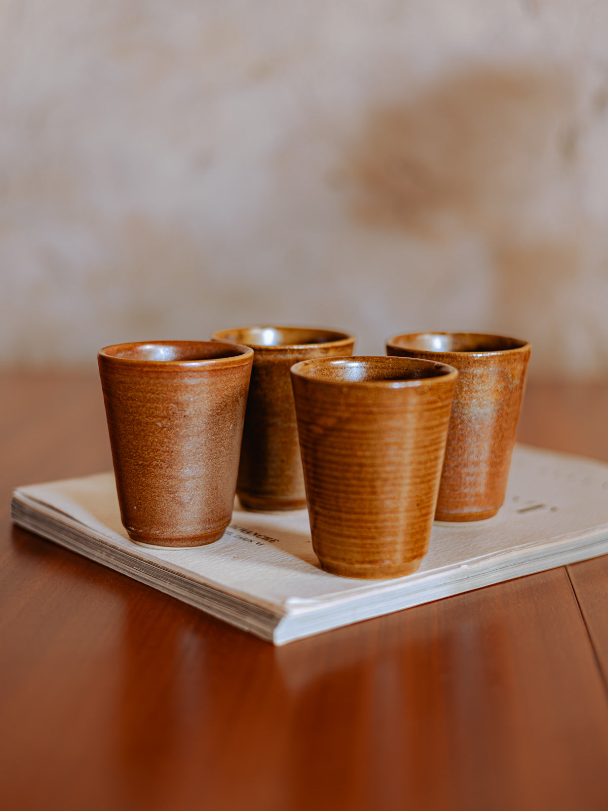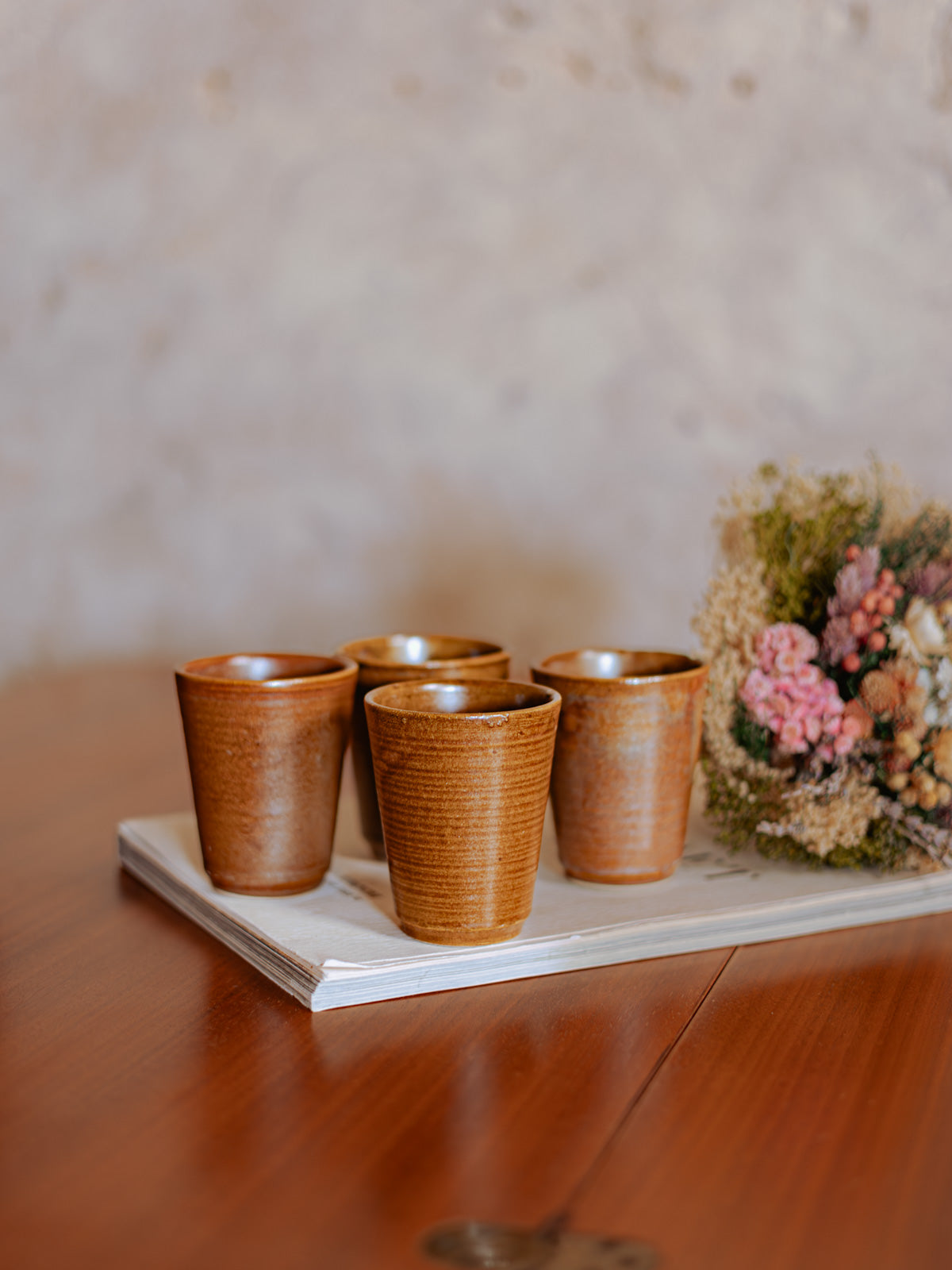 Adoptez ce lot de quatre verres en grès, aux lignes épurées et à la matière minérale qui apporte une élégance discrète à chaque table. Leurs justes proportions conviennent au quotidien comme aux repas conviviaux, offrant une prise en main confortable et une présence tactile grâce à leur surface légèrement texturée et leur finition mate. Leur teinte naturelle s'accorde facilement à des décors contemporains ou rustiques, créant une ambiance chaude et raffinée.