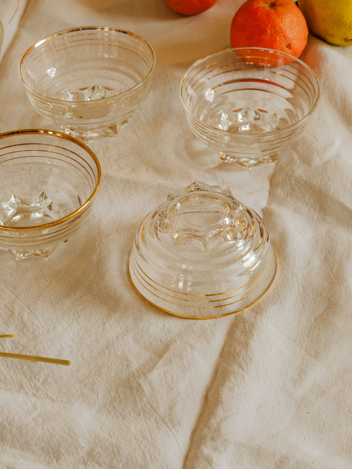 Apportez une touche Art déco à vos réceptions avec ce lot de 11 coupes vintage en verre au décor cerclé. Leur silhouette basse et généreuse, typique des années folles, est idéale pour servir champagne, cocktails ou desserts raffinés, offrant une dégustation délicate à chaque convive. Le cerclage doré souligne la finesse du verre et diffuse une lumière chaleureuse sur la table, créant une atmosphère à la fois festive et élégante qui mettra en valeur vos moments partagés.
