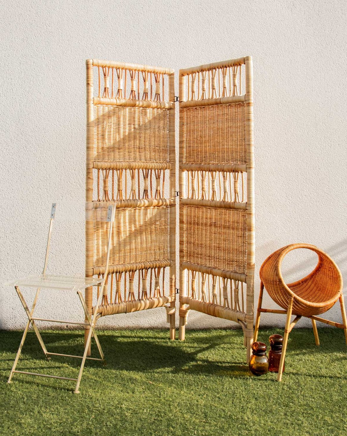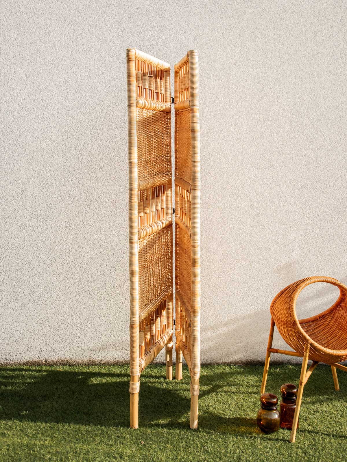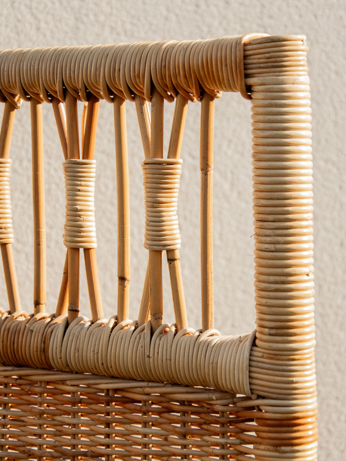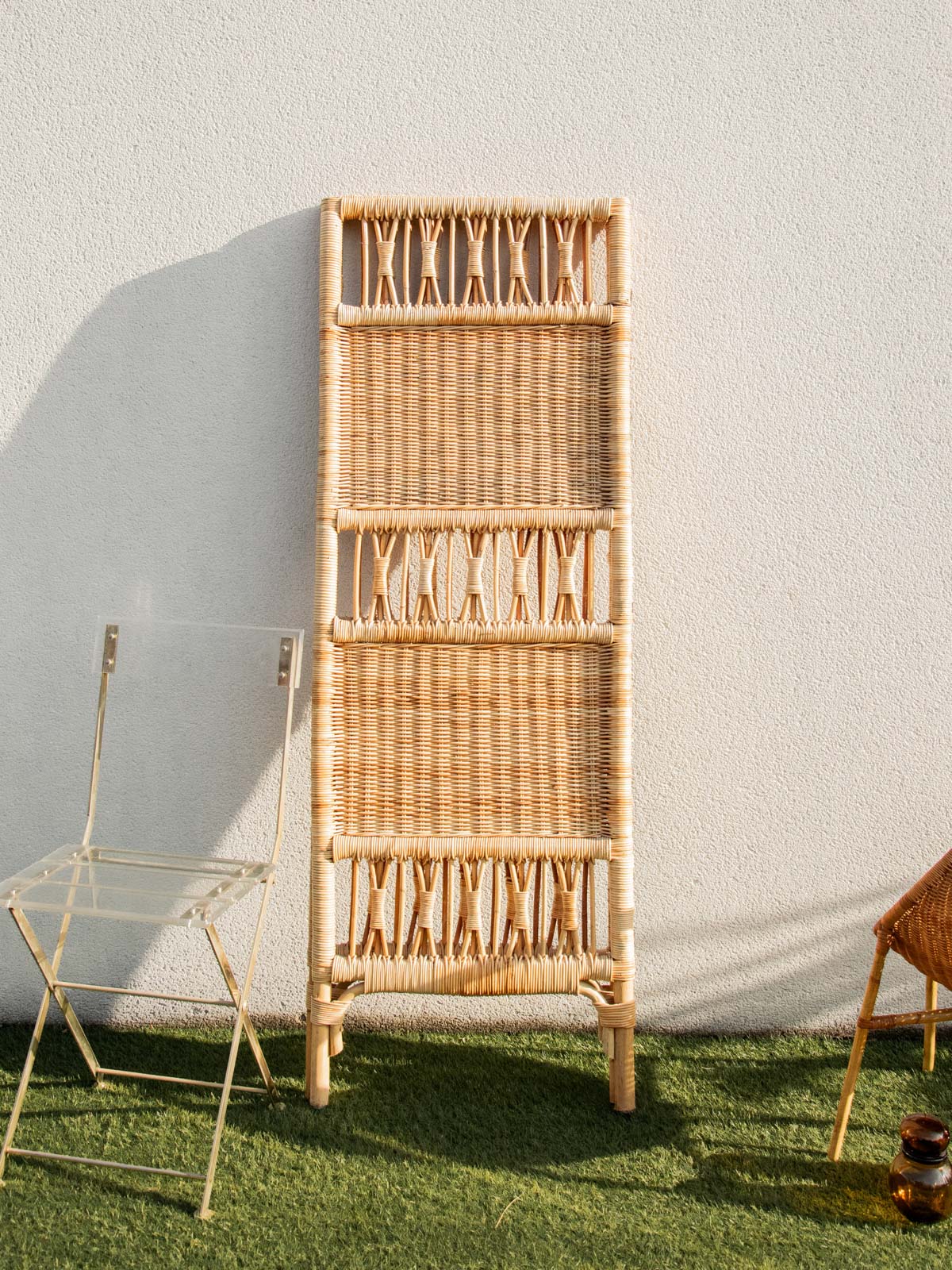 Ajoutez à votre intérieur ce paravent vintage en rotin et bambou au charme bohème, dont le tressage fin et régulier rappelle les fabrications des années 1960–1970. Composé de deux panneaux pliants, il se déplace aisément et se prête comme séparation de pièce, brise-vue ou tête de lit détournée, apportant une présence légère tout en restant stable. Les ligatures et le cannage révèlent un travail artisanal soigné, et sa patine naturelle confère chaleur et caractère à vos intérieurs.