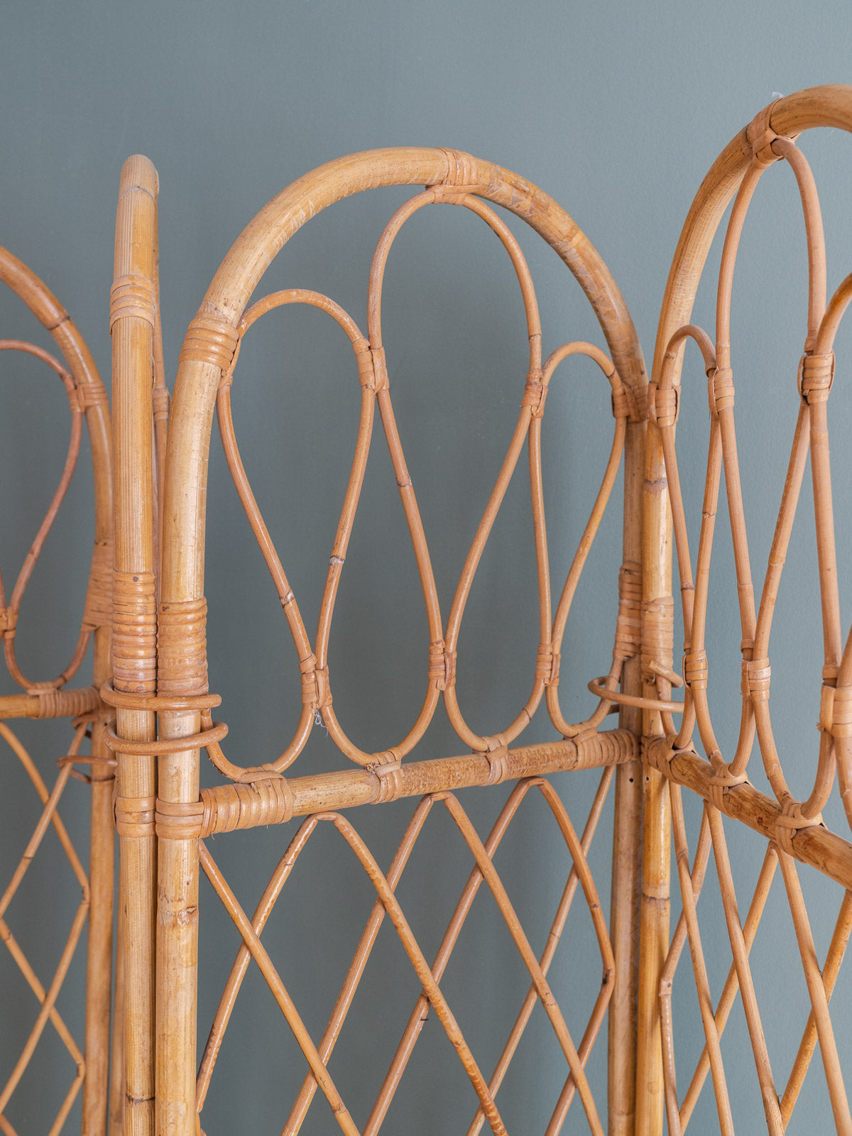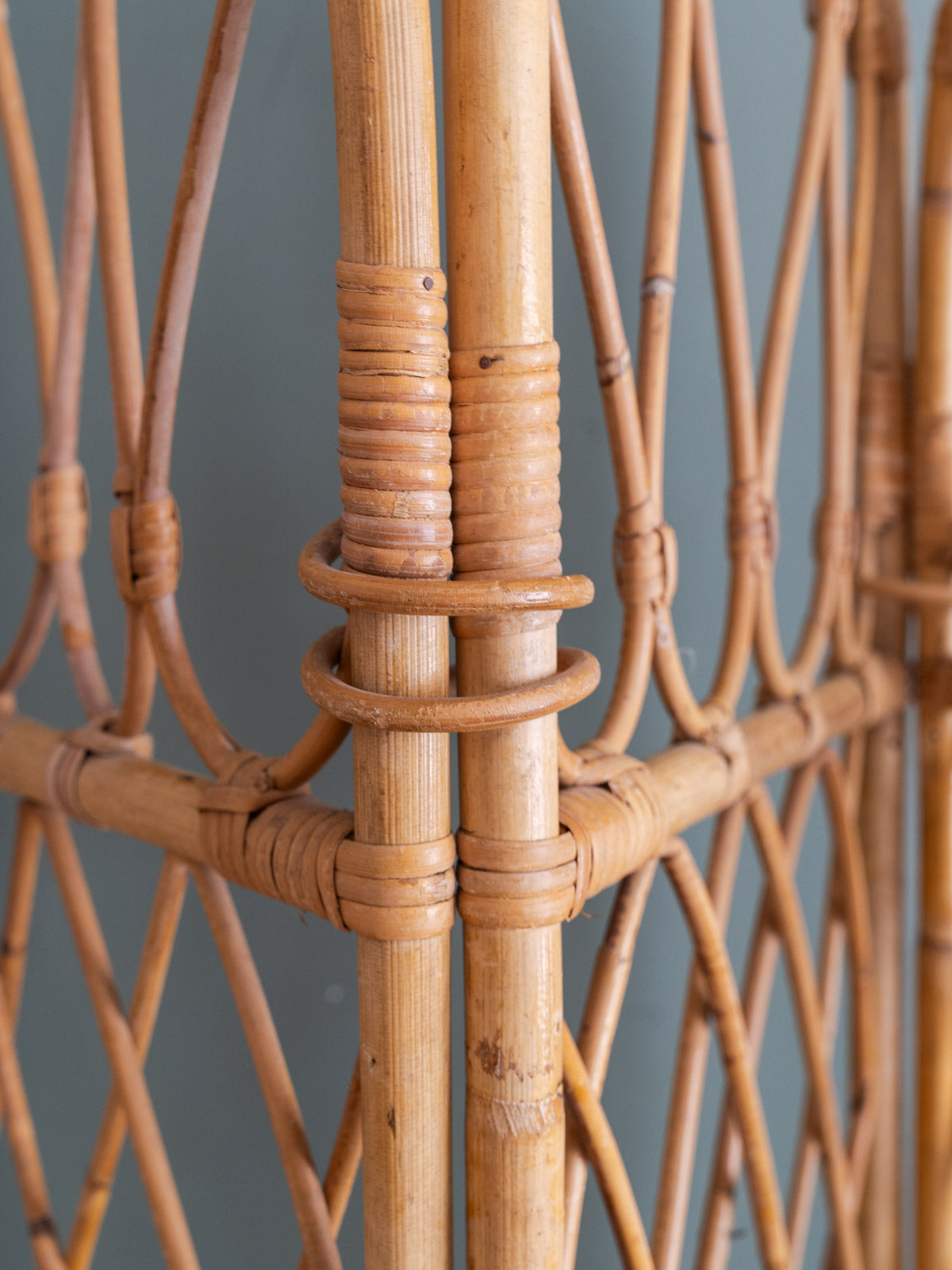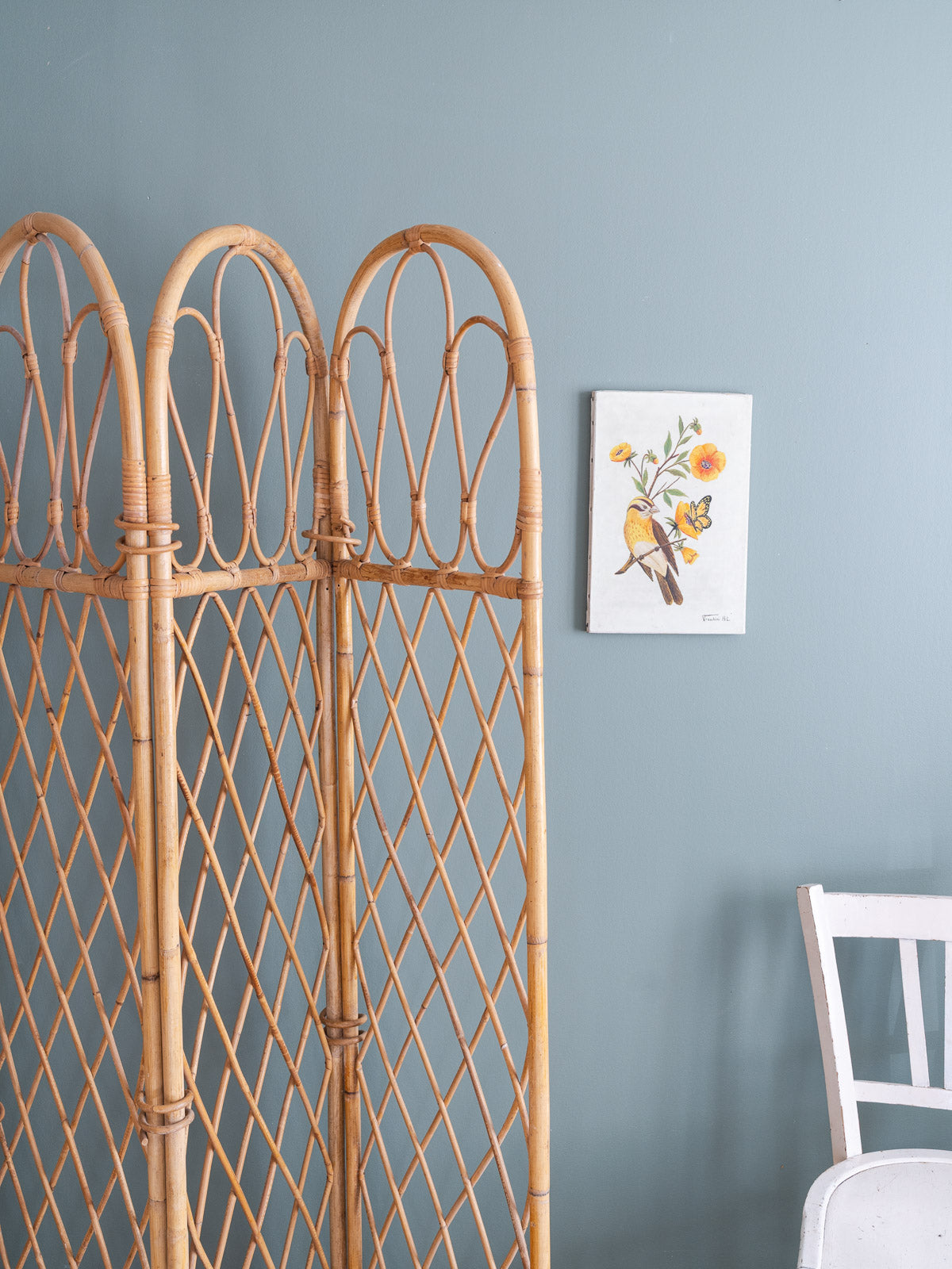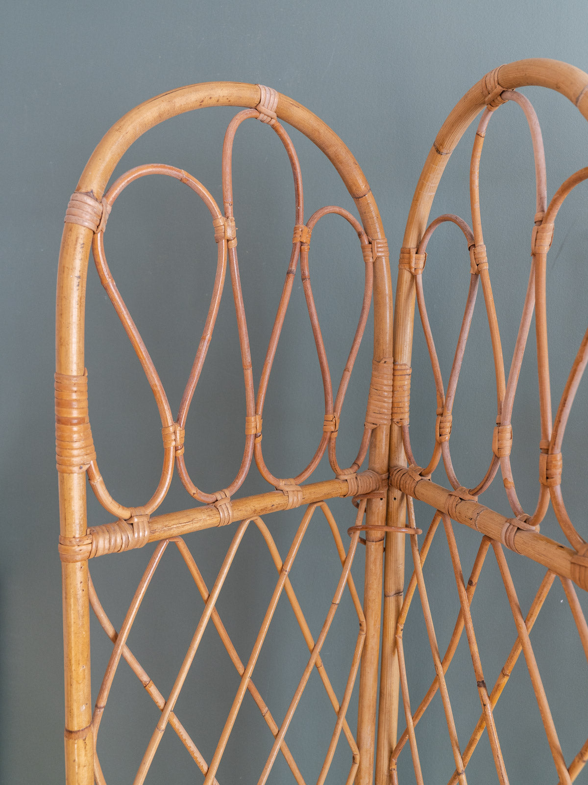 Adoptez ce paravent ancien en rotin, composé de quatre vantaux aux montants supérieurs courbés et d'un tressage quadrillé qui capte la lumière. Léger et modulable, il se déploie pour créer une séparation intime ou un coin lecture tout en se repliant facilement pour le rangement, offrant des proportions adaptées à une chambre, un salon ou une entrée. Son allure naturelle apporte une touche bohème-chic et chaleureuse, idéale pour structurer l'espace sans l'alourdir.