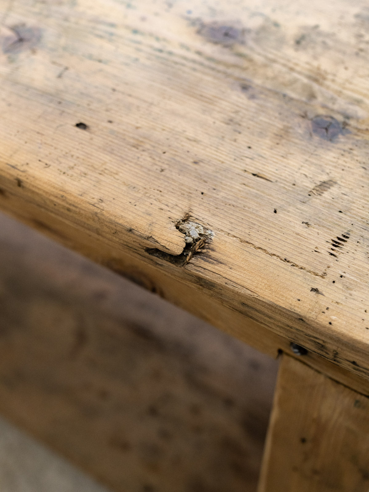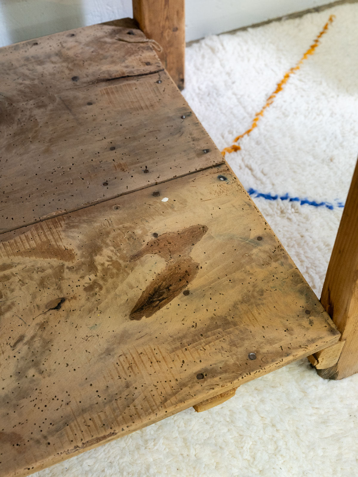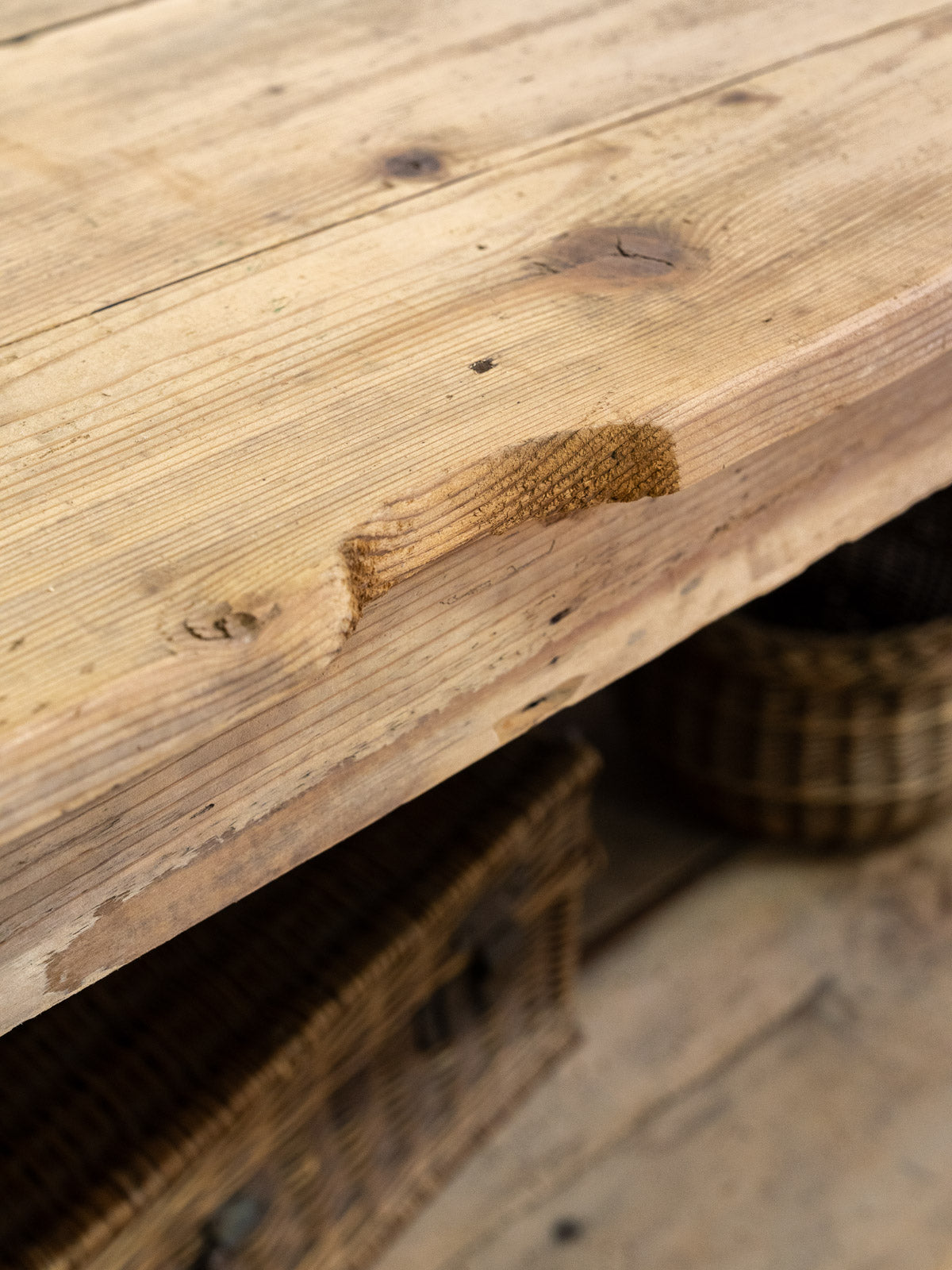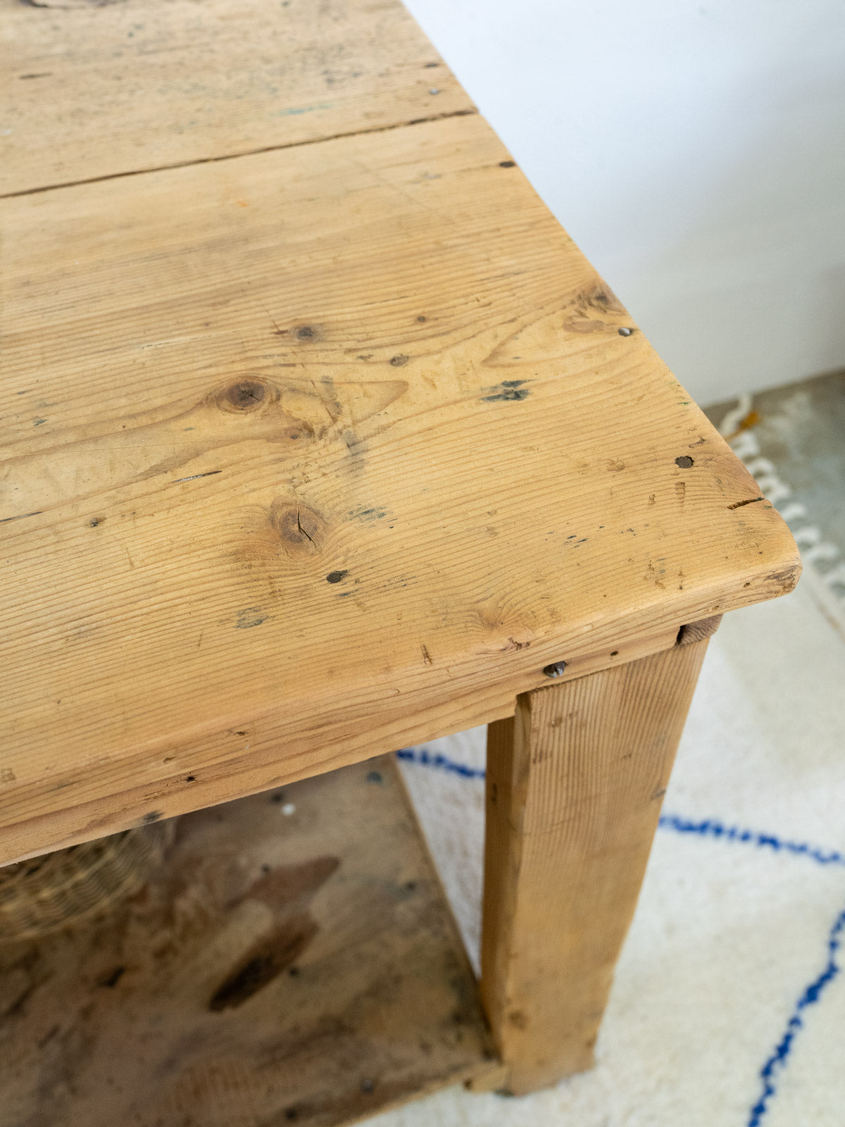 Adoptez ce meuble de métier, style établi, en bois, qui s'impose par son plateau généreux et sa silhouette caractérielle. Pensé comme un îlot ou un établi, il propose un sous-plateau et une niche pratique pour organiser ustensiles, accessoires ou petits appareils. Sa patine et son bois chaleureux créent une atmosphère conviviale et authentique, idéale pour une cuisine, un atelier ou un espace de création. Plusieurs traces du temps et d'usure qui racontent son histoire.
