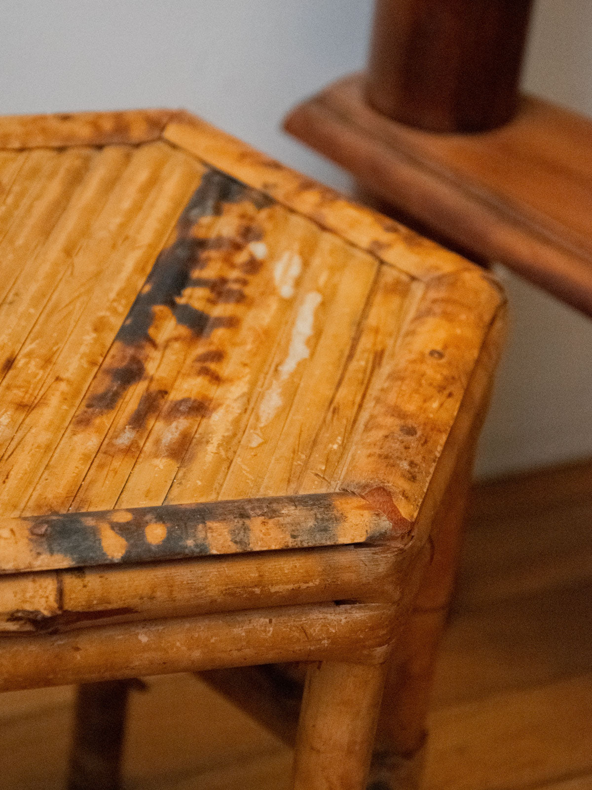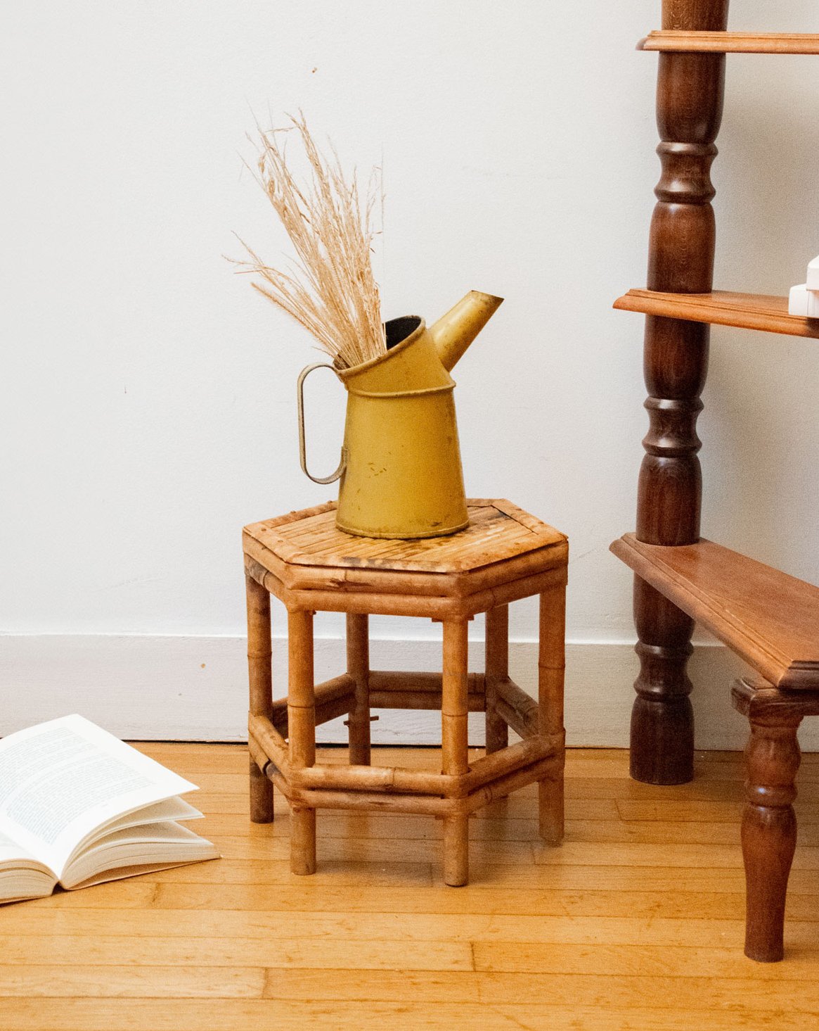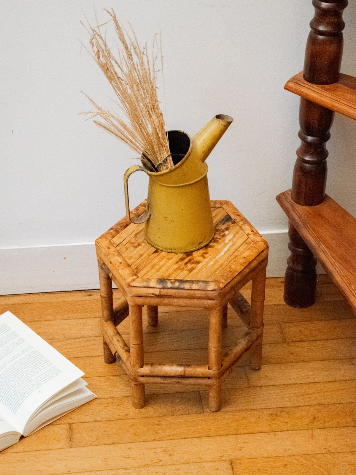 Ajoutez cette petite table d'appoint en bambou et bois au grain clair, dont la silhouette basse et compacte s'adapte facilement aux petits espaces. Sa matière naturelle apporte une chaleur subtile et une texture légère, idéale pour accueillir une tasse, une lampe ou une plante d'intérieur. Son format proportionné crée un point d'appui discret dans un coin lecture ou près d'un canapé, tout en préservant une atmosphère aérée et élégante. Parfaite pour composer un intérieur serein et convivial.