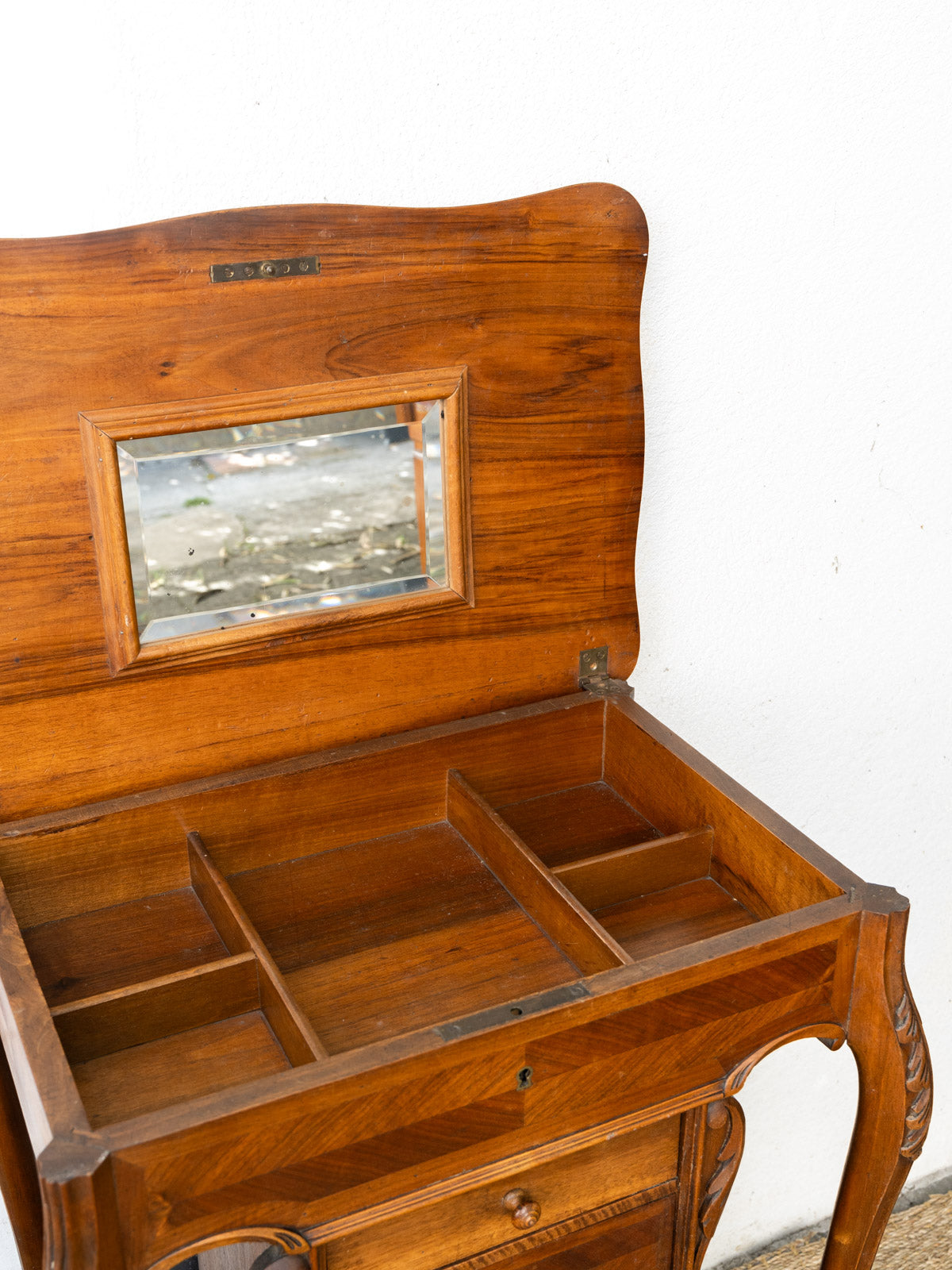 Découvrez notre élégante table d'appoint des années 1920, un véritable bijou vintage qui allie fonctionnalité et charme rétro. Dotée de quatre tiroirs pratiques pour un rangement optimal, son plateau se soulève pour révéler un miroir délicat, parfait pour les retouches de dernière minute. Cette pièce apportera une touche d'authenticité à votre intérieur. Offrez-vous un morceau d'histoire pour seulement.