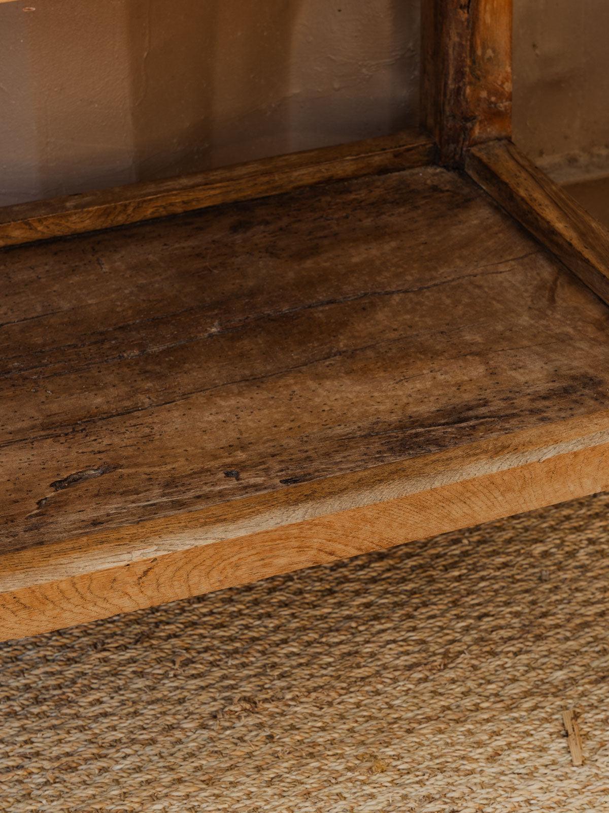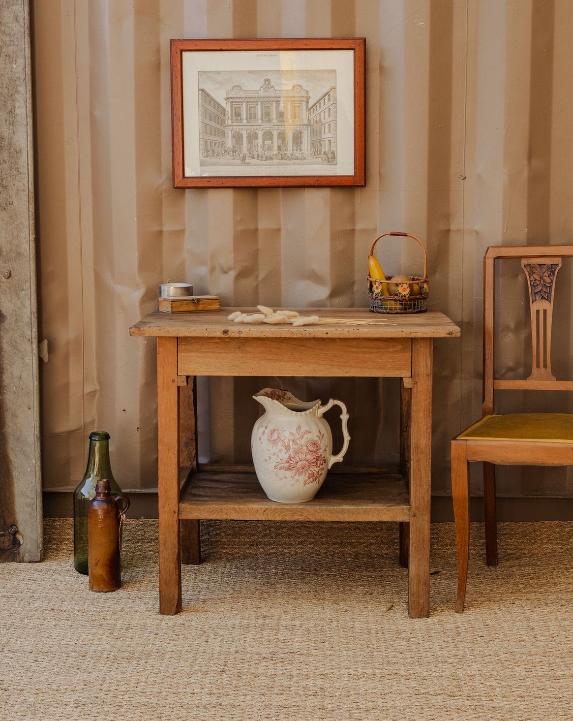 Apportez une touche campagne chic avec cette petite console ancienne en bois, aux lignes simples et à la patine chaleureuse. Son plateau et son sous-plateau offrent une surface d'exposition idéale pour lampe et objets décoratifs, tandis que le tiroir discret accueille clés et petits accessoires, dans un format compact adapté à une entrée ou un couloir. Son bois massif et son style authentique créent une atmosphère accueillante et élégante. Légères traces du temps présentes.