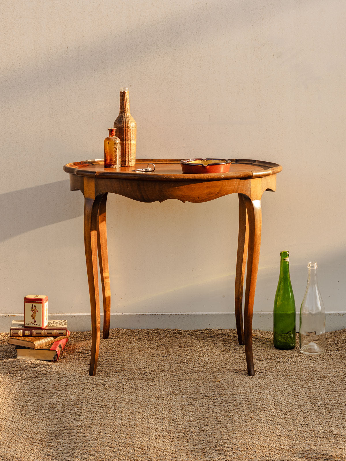 Ajoutez cette table d'appoint vintage en bois à votre intérieur, dont le plateau ovale et les pieds courbés évoquent une élégance rétro subtile. Ses proportions en font un compagnon idéal pour un coin lecture, un salon cosy ou une chambre, offrant une surface délicate pour lampe, plante ou livres. La chaleur du bois et sa silhouette apportent une ambiance douce et accueillante, conjuguant fonctionnalité et charme ancien. Quelques traces du temps présentes.