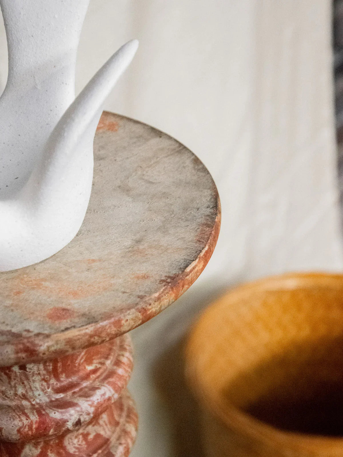 Adoptez cette colonne en bois à l'effet marbré rosé, inspirée des piliers romains, qui apporte une touche d'histoire revisitée à votre intérieur. Sa silhouette élancée et sa base carrée lui confèrent des proportions équilibrées, idéales comme socle discret pour une plante, une lampe ou une sculpture. Le travail du bois met en valeur des nuances rosées et une texture subtile qui réchauffent une entrée ou un salon, créant une ambiance raffinée et sereine.