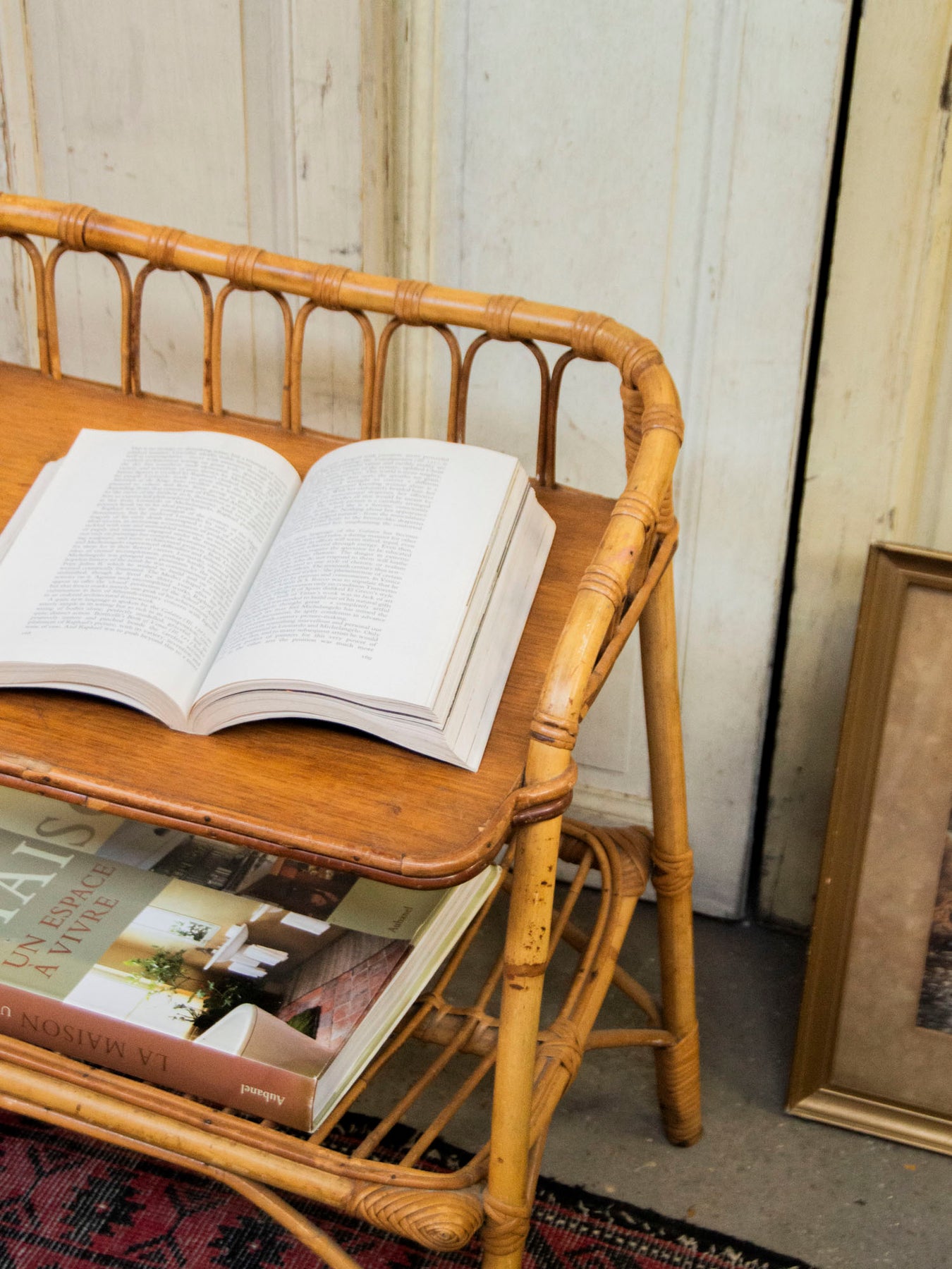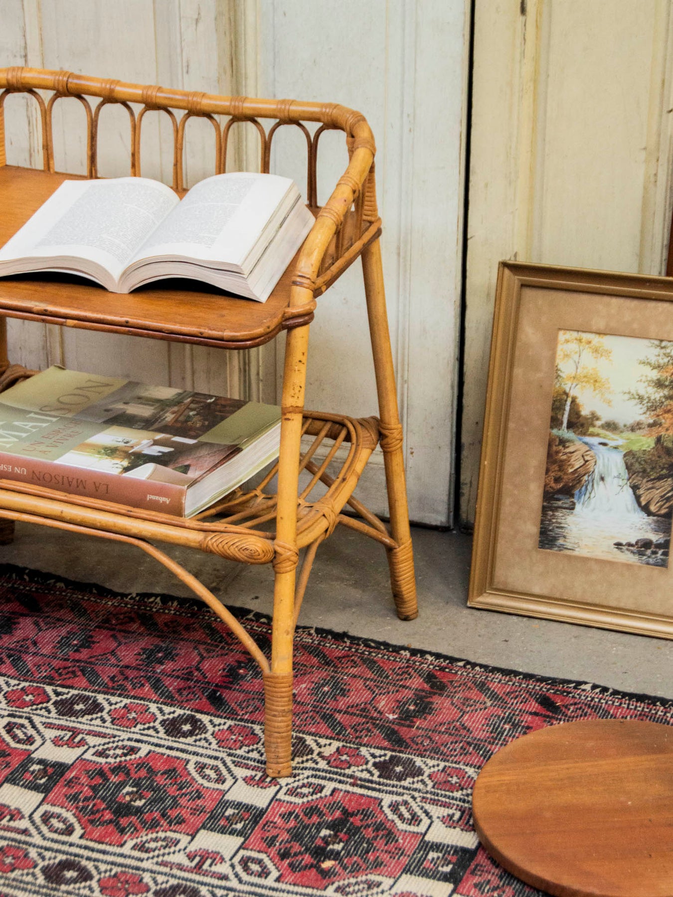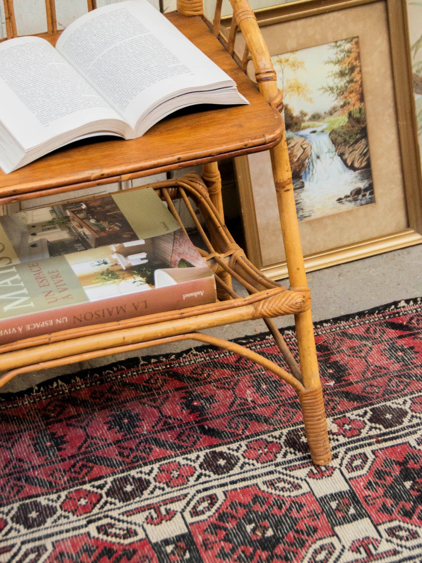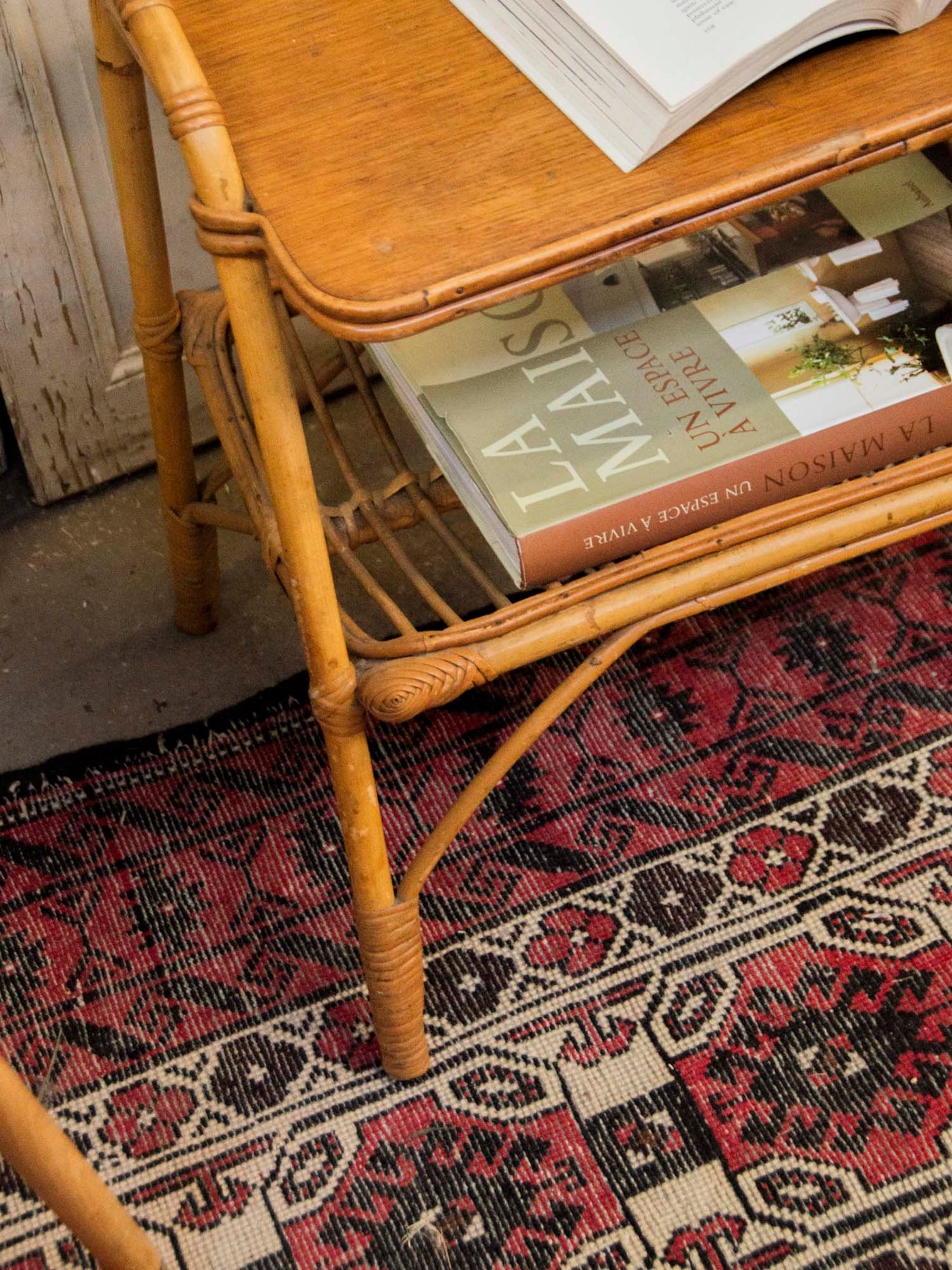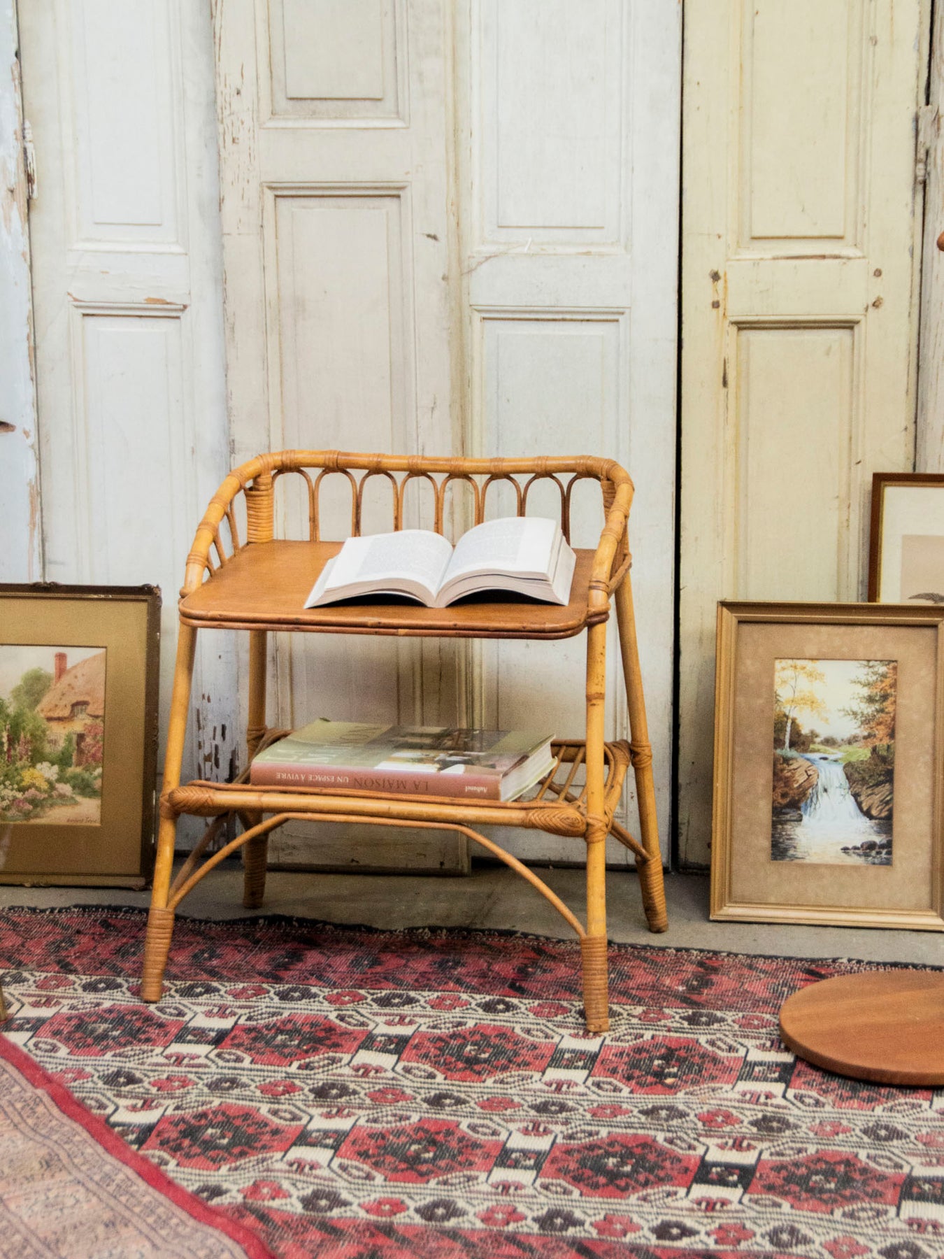 Adoptez cette table d'appoint en rotin au charme vintage, dotée d'un plateau en bois et d'une étagère inférieure pour glisser livres ou objets du quotidien; sa structure légère et le tressage naturel apportent une présence discrète et chaleureuse, idéale pour composer un coin lecture, servir de table de chevet ou compléter un salon bohème et lumineux, tandis que ses proportions contenues offrent une grande polyvalence dans les petits espaces.