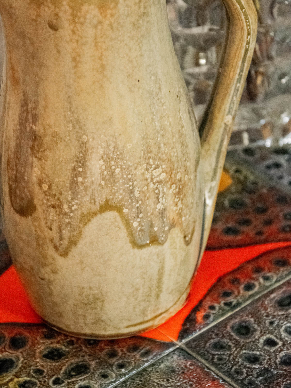 Apportez un souffle rétro à votre table avec ce pichet en céramique inspiré du style Denbac, doté d'une glaçure douce au fini légèrement satiné. Sa silhouette équilibrée et son gabarit généreux permettent de servir eau, jus ou lait, ou de le détourner en vase pour une composition florale naturelle. Il instille une ambiance chaleureuse et posée, entre artisanat discret et élégance du quotidien.