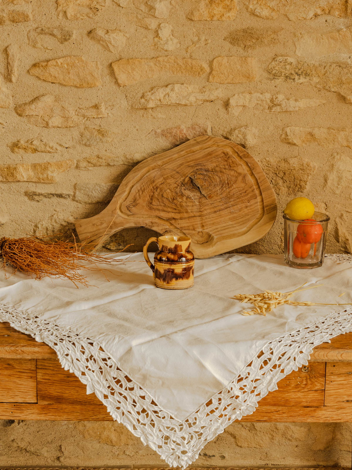 Adoptez cette carafe en poterie vernissée aux nuances beige et marron, qui dévoile un charme artisanal tout en sobriété. Sa forme la rend idéale comme pot à lait ou pour verser sauces et crèmes lors d'un petit-déjeuner ou d'un café intime. Le vernis apporte une surface lisse et résistante, tandis que l'accord de couleurs réchauffe la table d'une note naturelle et élégante. Son format délicat invite à des instants de service soignés.