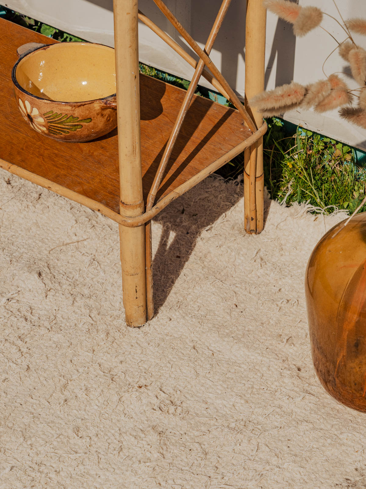 Apportez une touche naturelle à votre intérieur avec cette étagère en bambou et bois, aux lignes élégantes et proportions élancées qui s'intègrent facilement dans un coin ou une entrée. Ses quatre tablettes offrent des niveaux modulables pour livres, plantes ou objets décoratifs, révélant une élégance discrète et un style bohème-chic. La chaleur du bois et la nervure du bambou créent une ambiance sereine et lumineuse. Quelques traces du temps présentes.