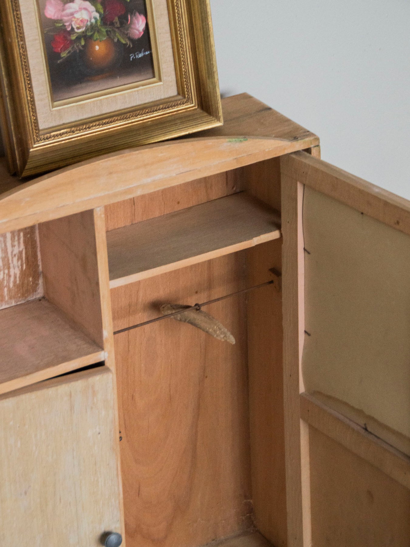 Découvrez cette armoire de pharmacie patinée au charme discret, animée d'un petit miroir ovale qui diffuse une touche rétro et élégante. Son format compact, pensé pour les espaces restreints, renferme une petite penderie intérieure offrant un rangement soigné pour brosses, flacons ou linges, tout en restant facilement accessible. La finition patinée sublime les matériaux et installe une atmosphère chaleureuse et apaisée, idéale pour une salle de bains ou une entrée.