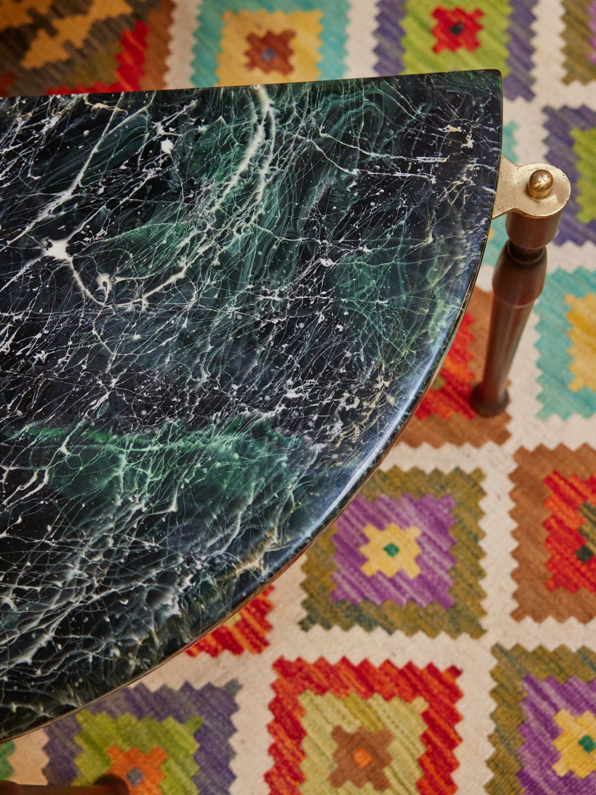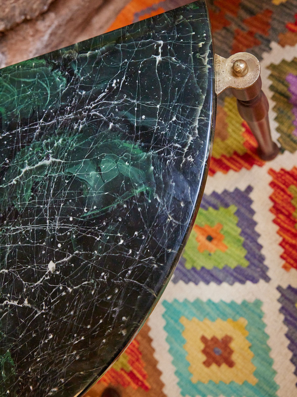 Sublimez votre intérieur avec ces étagères modulables en imitation marbre vert, reposant sur des pieds en bois au profil sobre et chaleureux. Leur modularité permet de les disposer seules, par deux, trois ou quatre pour s'adapter aux proportions de votre salon, bureau ou entrée, offrant des surfaces idéales pour exposer vases, livres et objets de collection. Le contraste entre l'aspect minéral des plateaux et la chaleur du bois crée une ambiance élégante et contemporaine, parfaite pour mettre en valeur vos pièces favorites.