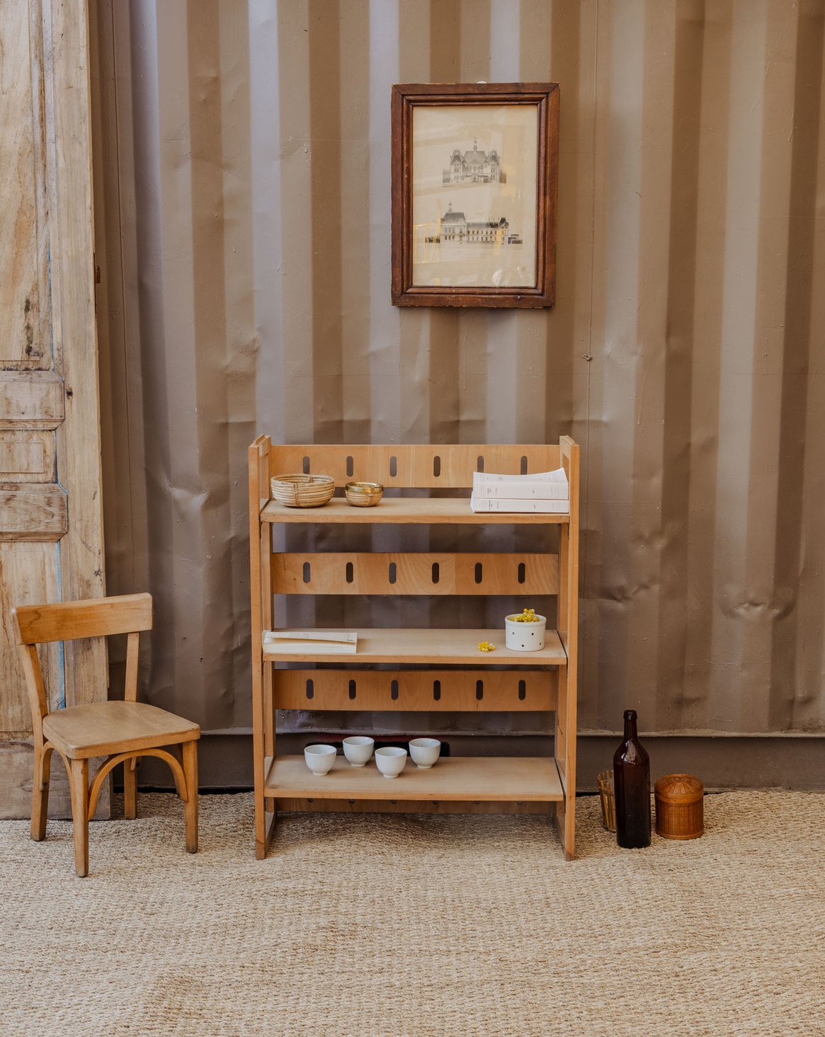Apportez cette étagère de bouquiniste pliable en bois, aux lignes légères et à l'allure élégante. Ses trois tablettes offrent un rangement modulable pour romans, revues et objets déco, tout en restant suffisamment pratique pour s'insérer dans un coin cosy ou un hall d'entrée. Sa finition naturelle diffuse une chaleur douce et invite à la lecture, tandis que son système pliant facilite le rangement et le transport. Quelques traces du temps présentes qui font son authenticité.