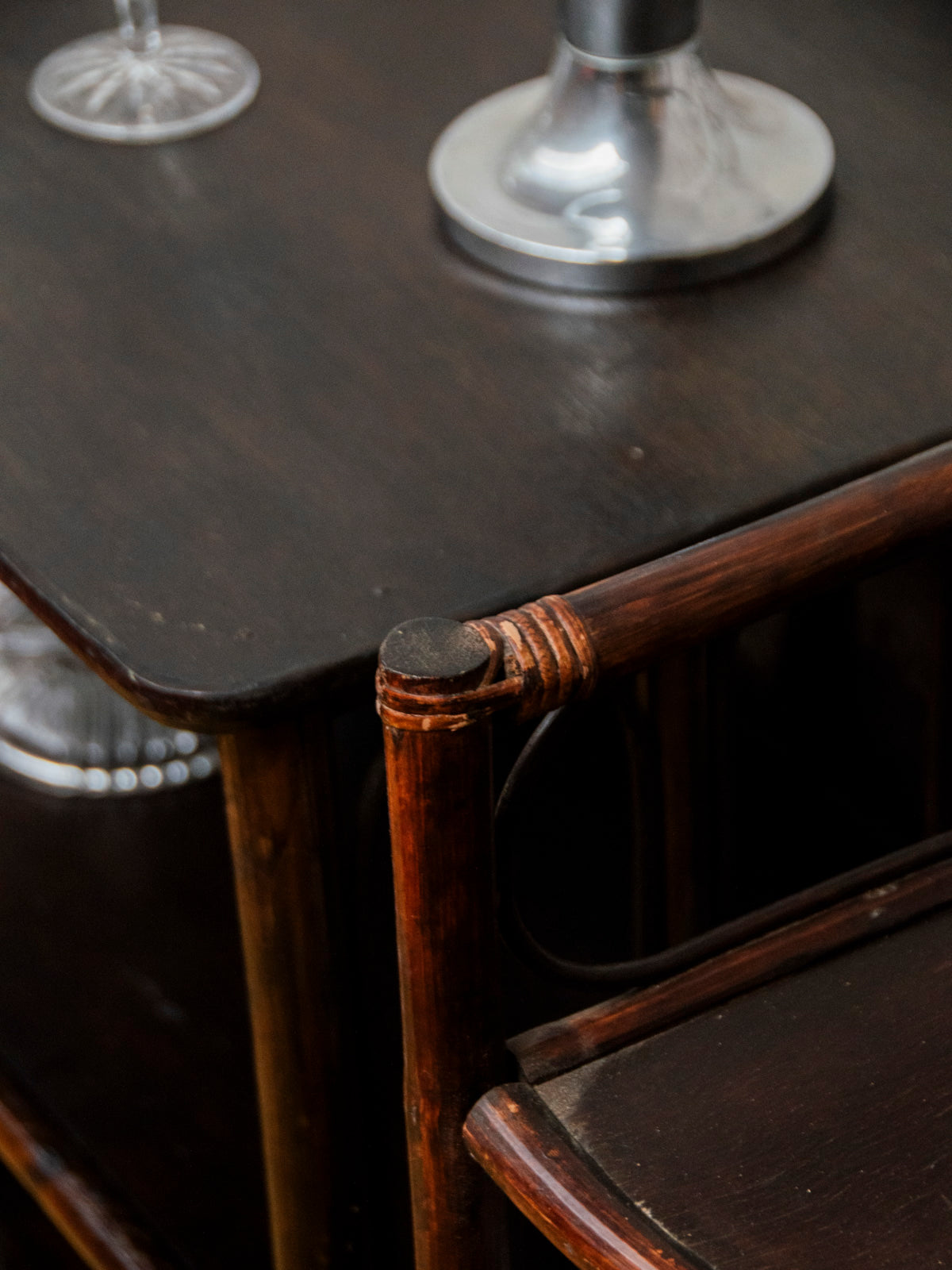Découvrez cette étagère d'angle en rotin foncé, élégante et légère, dont la tressure naturelle apporte une note chaleureuse et texturée à votre intérieur. Ses trois plateaux, agencés pour optimiser les coins restreints, accueillent plantes, livres ou accessoires de salle de bains tout en conservant une silhouette aérienne qui n'encombre pas l'espace. Sa teinte profonde et sa ligne sobre s'accordent aux décors contemporains comme bohèmes, pour une ambiance cosy et organisée, propice à la mise en scène d'objets choisis.