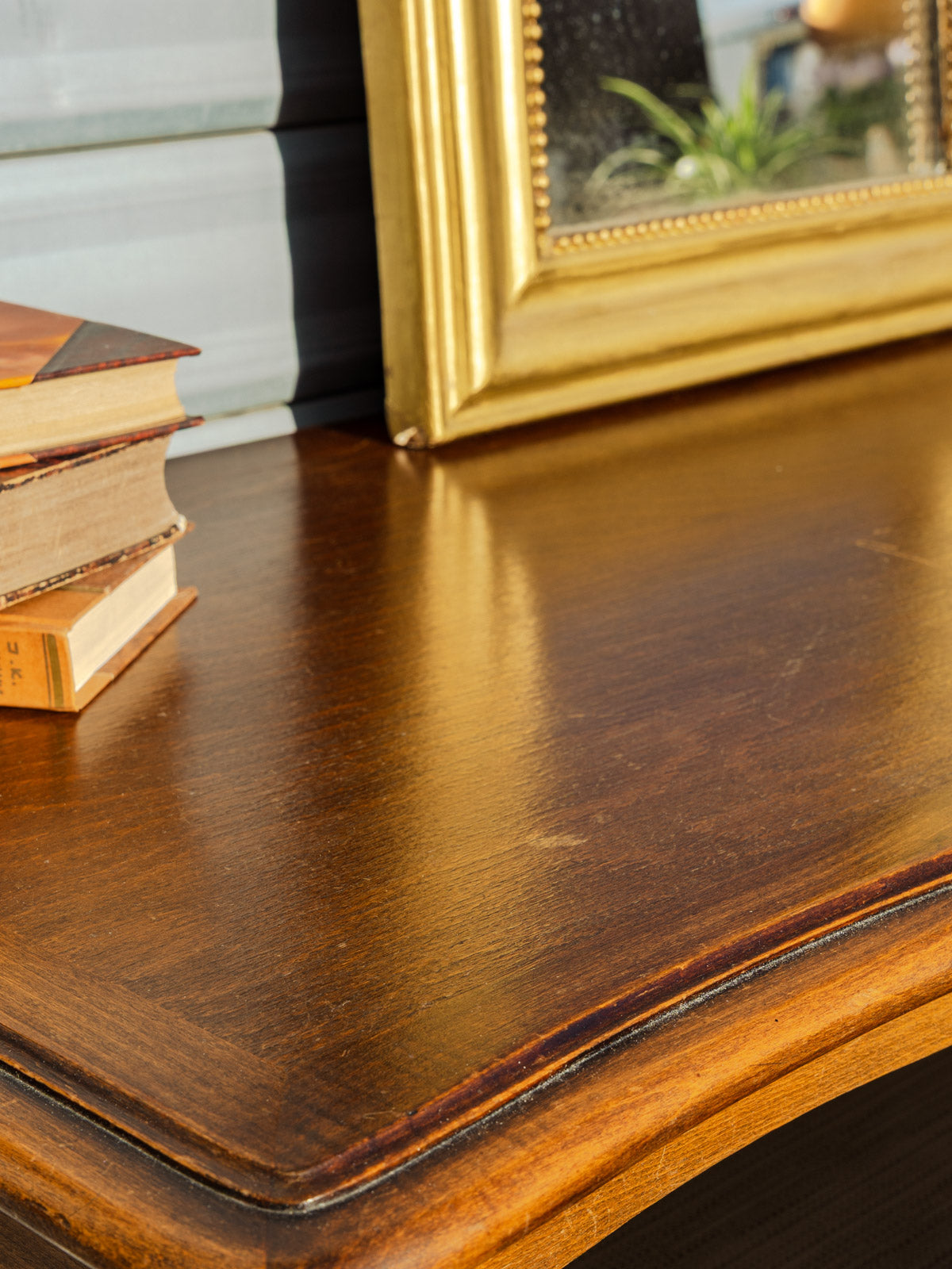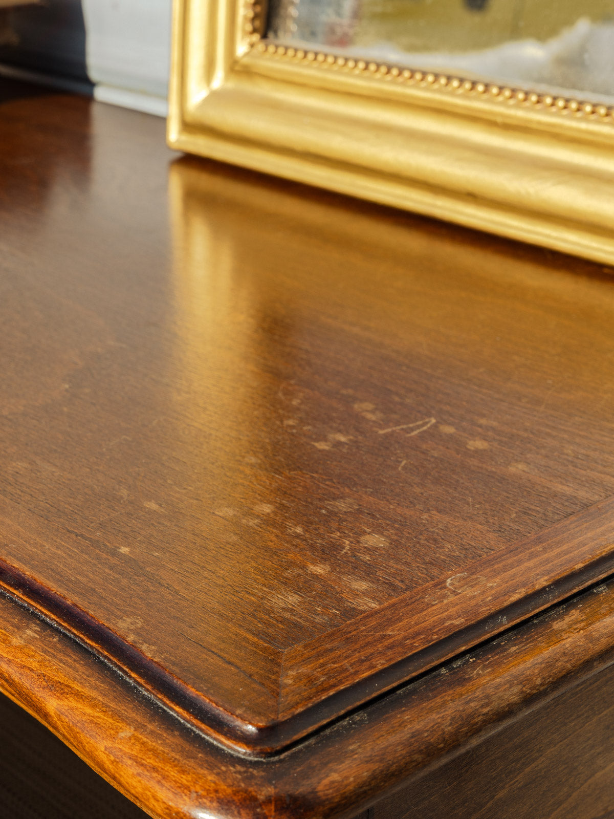 Commode ancienne en chêne au charme intemporel, idéale pour apporter une présence chaleureuse dans une chambre ou un salon. Son large plateau accueille des objets décoratifs tandis que ses trois tiroirs spacieux offrent un rangement pratique. Les poignées en métal doré apportent une note raffinée. Légères traces du temps qui participent à son charme.