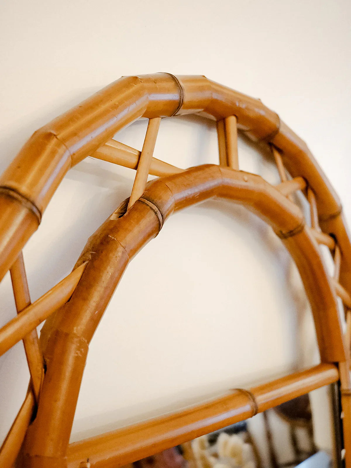 Découvrez ce miroir en bambou au cadre délicat et aux proportions élancées, qui apporte une touche naturelle et chaleureuse à vos pièces. Son format portrait s'installe aisément dans une entrée, une chambre ou au-dessus d'une coiffeuse, réfléchissant la lumière pour agrandir subtilement l'espace. Le travail du bambou apporte une note artisanale et sobre, idéale pour une décoration inspirante et apaisée. En très bon état.