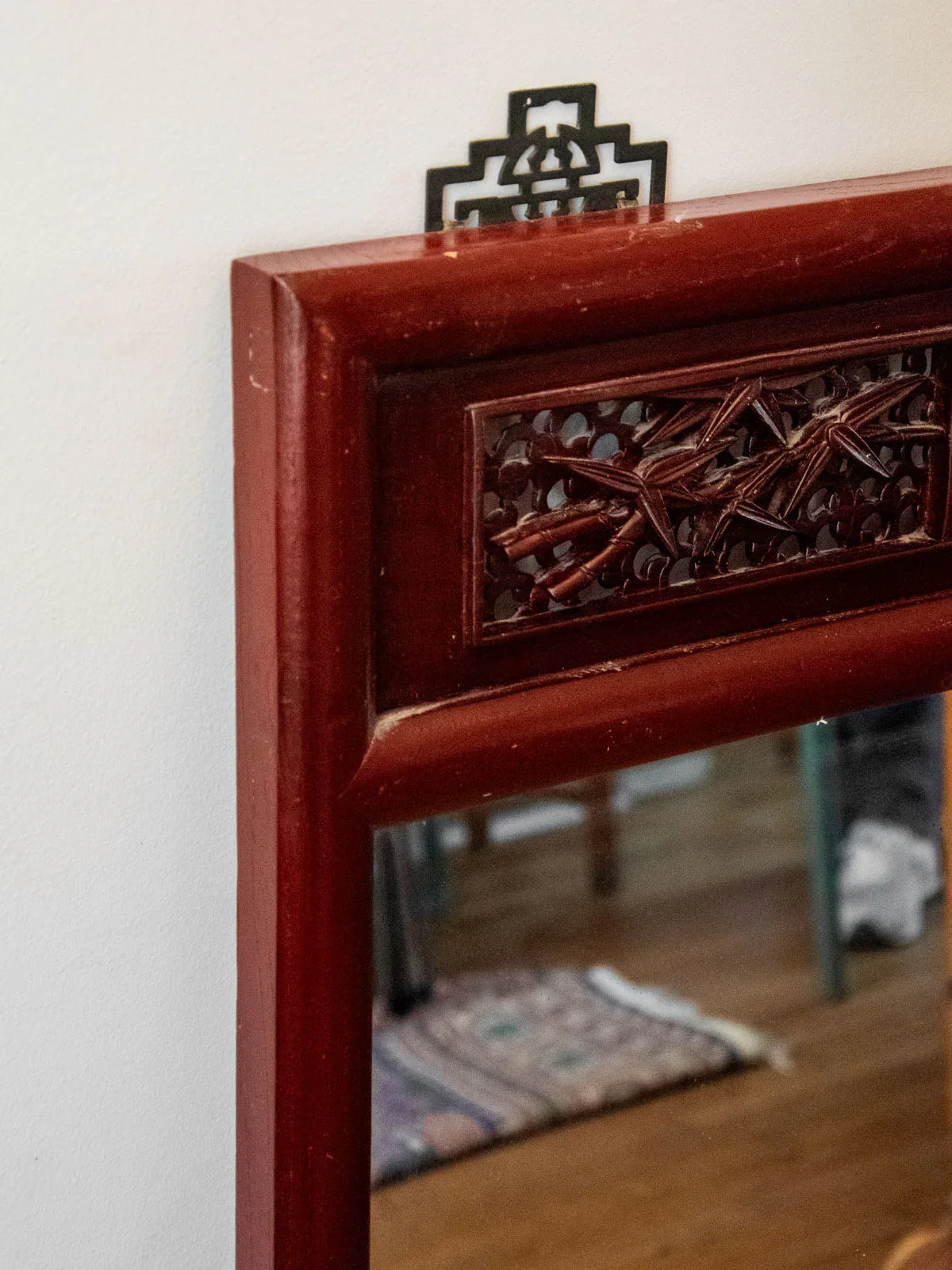 Apportez une touche d'inspiration asiatique avec ce miroir en bois foncé et verre, au profil élancé pensé pour sublimer une entrée ou une chambre. Le cadre en bois offre une présence chaleureuse et sobre, tandis que la surface miroir agrandit visuellement l'espace et réfléchit la lumière avec élégance. Sa proportion étroite et haute s'intègre aisément contre un mur, apportant une ambiance zen et raffinée à votre intérieur.