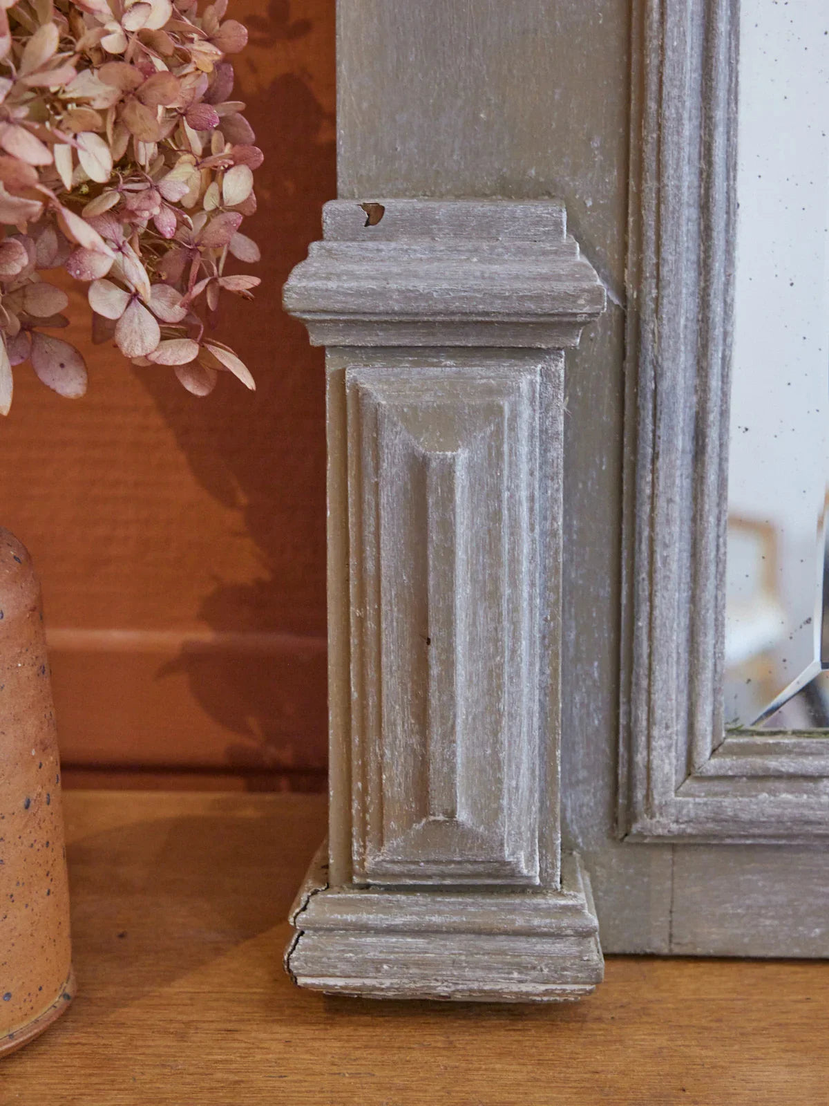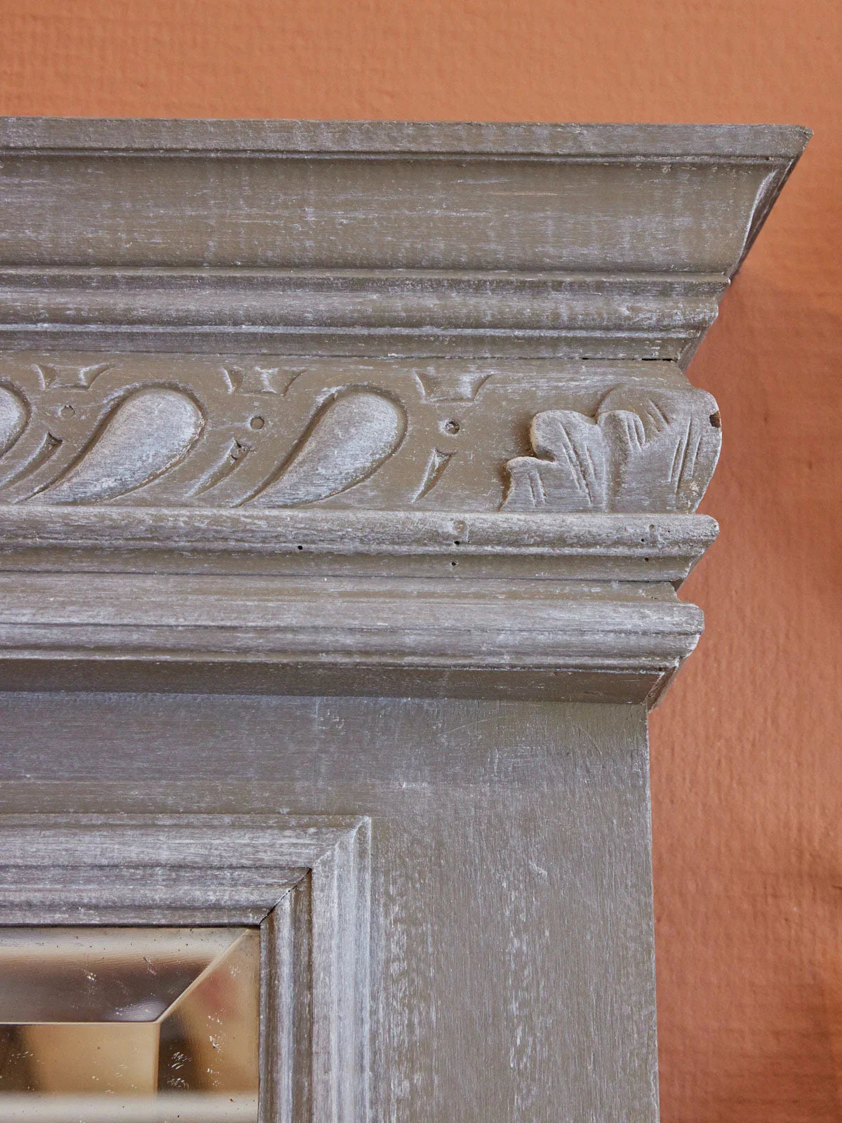 Sublimez votre intérieur avec ce grand miroir trumeau, à installer au-dessus d'une cheminée, sculpté dans un bois patiné qui porte une histoire discrète; son large verre réfléchit la lumière et agrandit visuellement la pièce. Le cadre en bois aux teintes naturelles et aux motifs sobres s'accorde aussi bien à un salon classique qu'à un décor contemporain, apportant une présence élégante. Idéal pour ponctuer une entrée ou une cheminée et créer une ambiance chaleureuse et accueillante.