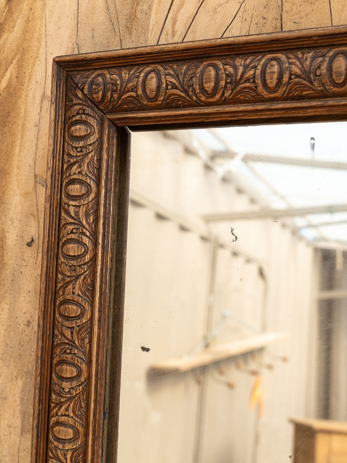 Ajoutez une touche d'élégance intemporelle à votre intérieur avec ce miroir ancien au cadre en bois sculpté, inspiré du style Art Déco. Ses lignes raffinées et ses motifs délicats subliment tout espace, tandis que son miroir de qualité reflète à merveille la lumière ambiante. Idéal pour une ambiance vintage et sophistiquée, ce miroir fera le bonheur des amoureux de la décoration authentique. Un accessoire incontournable pour habiller vos murs avec charme et caractère.