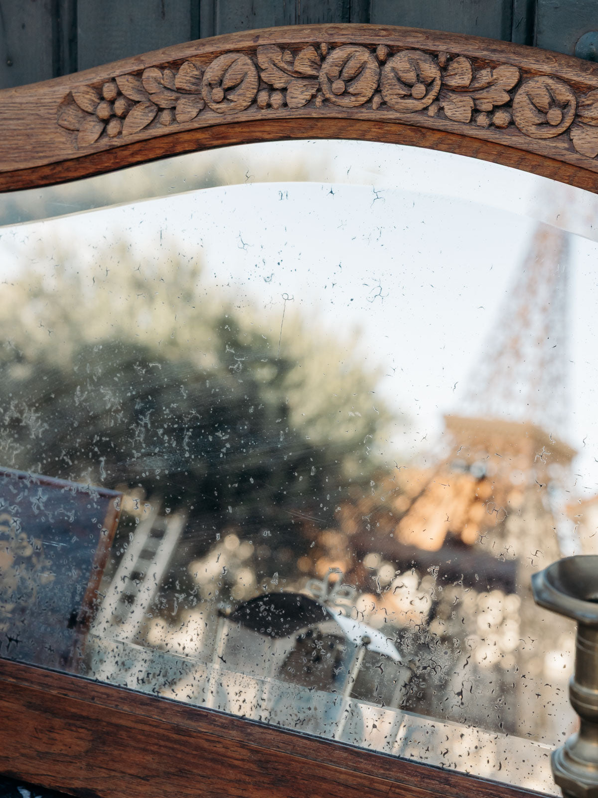 Sublimez votre intérieur avec ce miroir en bois au sommet arrondi, orné de fleurs sculptées directement dans la matière. Sa largeur généreuse et son profil très fin permettent de l'installer au‑dessus d'une commode ou d'une console pour ouvrir une entrée ou illuminer une chambre, tandis que le bois apporte une touche chaleureuse et naturelle. Le décor floral discret confère une élégance narrative, entre sobriété et charme ancien. Légères traces du temps présentes.
