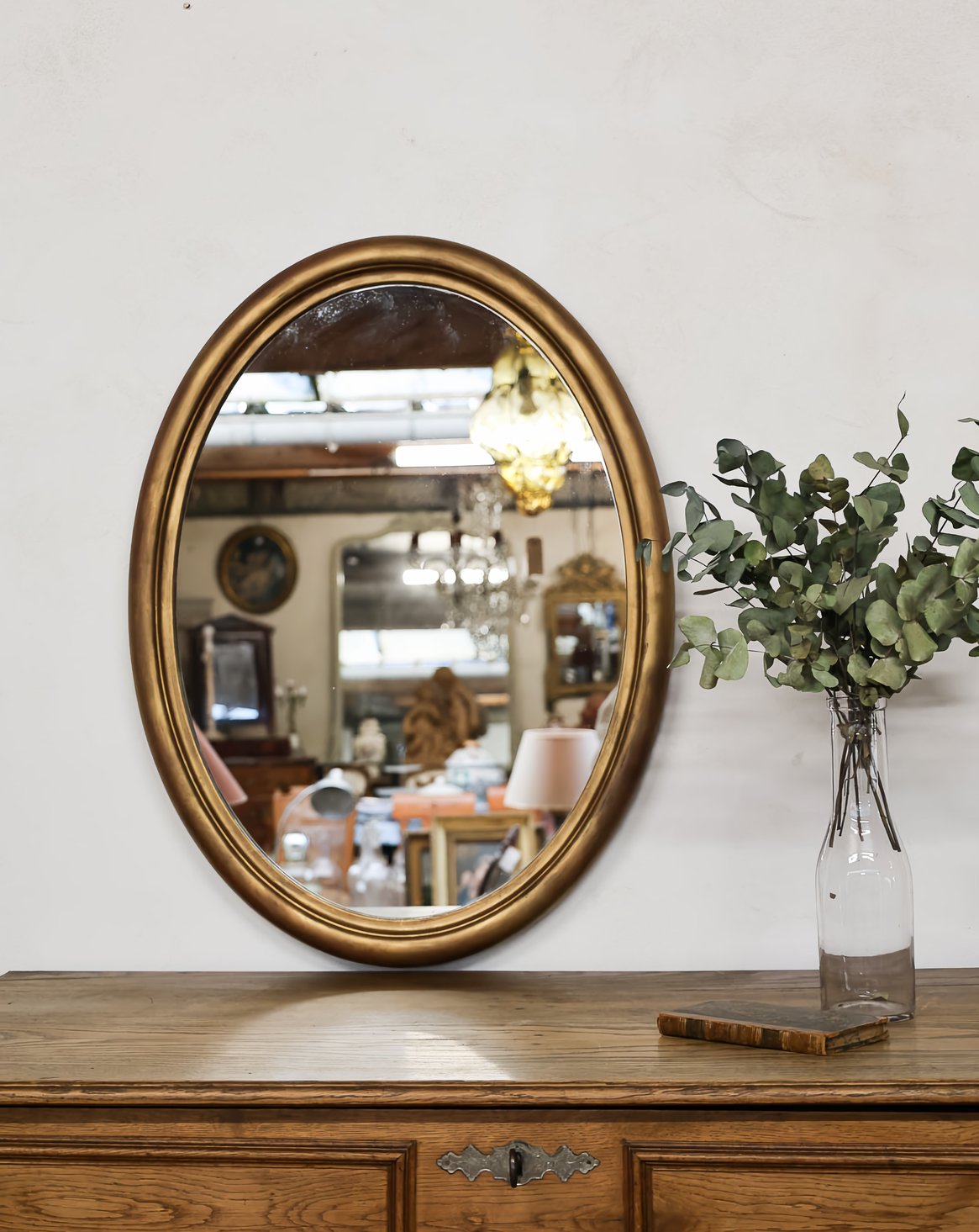 Sublimez votre intérieur avec ce miroir ovale au cadre en bois doré, subtilement patiné et paré de reflets ocre. Sa silhouette élancée et son format contenu en font une pièce idéale pour une entrée, une chambre ou au-dessus d'une console, apportant profondeur et lumière sans alourdir l'espace. Le bois doré confère une élégance douce, tandis que la patine raconte une histoire et favorise une ambiance chaleureuse et raffinée.