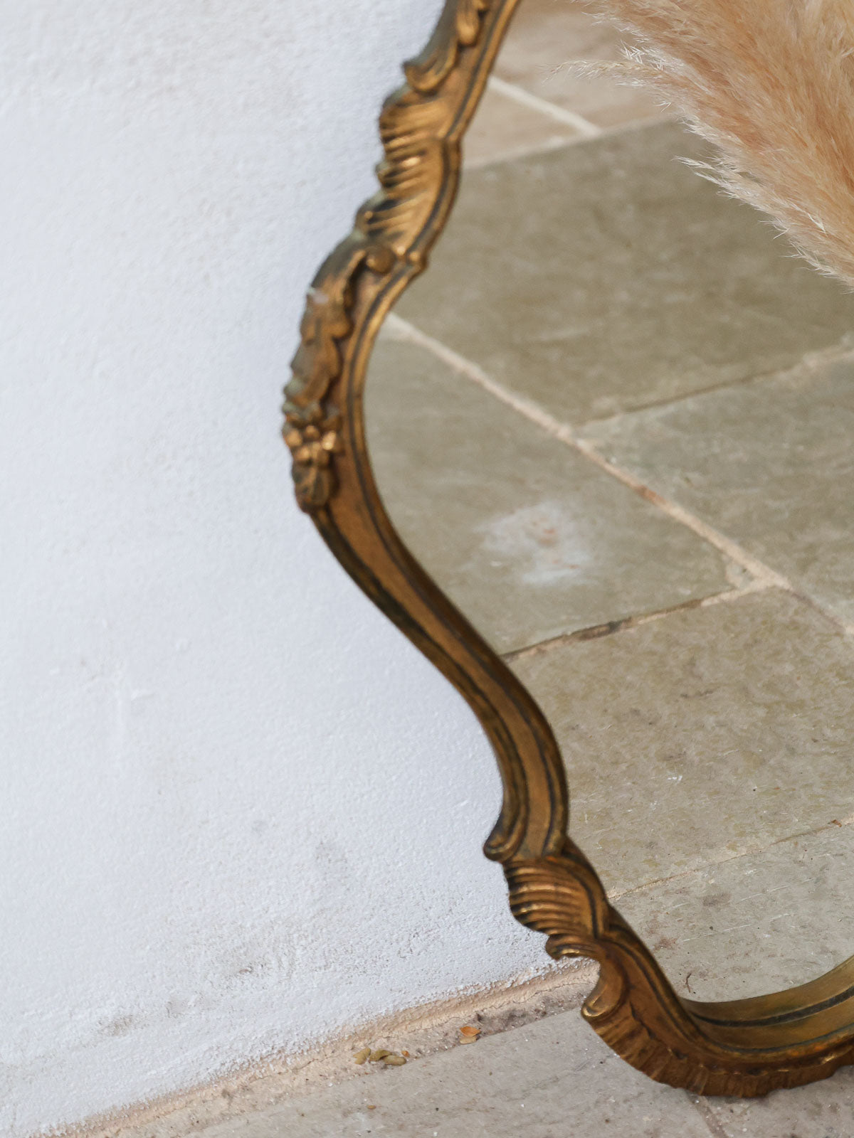 Sublimez votre mur avec ce miroir baroque en bois doré, dont le cadre finement sculpté apporte une note raffinée et sculpturale à la pièce. Sa glace au format contenu diffuse la lumière et capte le regard sans dominer l'espace, parfaite au‑dessus d'une console, dans une entrée ou une salle de bains chaleureuse. Le travail du bois et la dorure lui donnent une patine d'inspiration ancienne qui réchauffe une décoration classique ou apporte un contraste élégant dans un intérieur contemporain.
