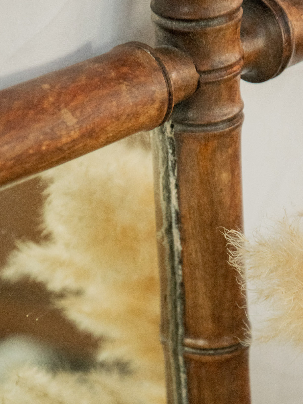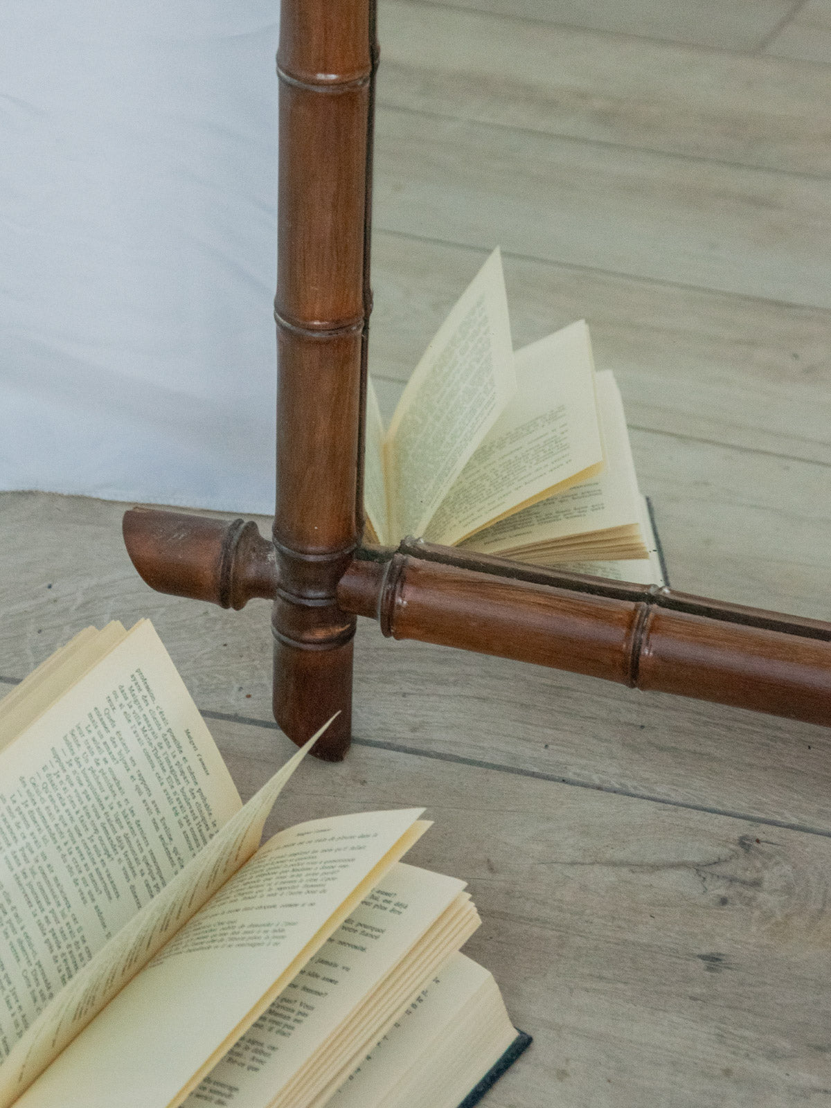 Sublimez votre intérieur avec ce grand miroir en bois sculpté, au motif effet bambou qui apporte une élégance naturelle et graphique; son allure sculptée invite une présence chaleureuse et raffinée. Le format imposant structure une entrée ou une pièce de vie, réfléchissant la lumière pour agrandir l'espace et souligner vos éléments décoratifs. Le bois travaillé affirme un style artisanal, sobre et accueillant, tandis que le miroir, en très bon état, conserve une belle clarté. Trace de peinture sur un angle et légères traces du temps présentes.