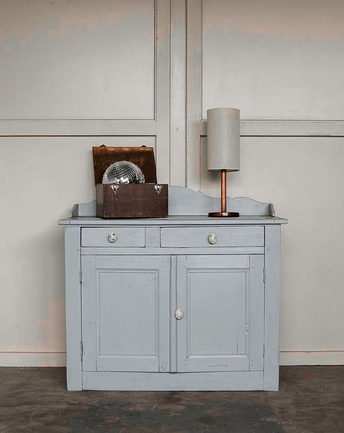 Découvrez ce buffet ancien entièrement restauré, à la fois commode et meuble de rangement, habillé d'une patine bleu-gris douce qui apporte une note intemporelle. Il propose deux tiroirs et deux portes, une étagère intérieure en aggloméré et des poignées en porcelaine, offrant une belle capacité pour la vaisselle quotidienne ou le linge de maison. Solide et sain, il présente des proportions équilibrées qui s'adaptent aussi bien à une cuisine qu'à une salle à manger ou une entrée. Sa corniche est amovible. Sobriété et charme ancien se marient ici pour créer une pièce pratique et inspirante. Légères traces du temps qui participent à son charme.