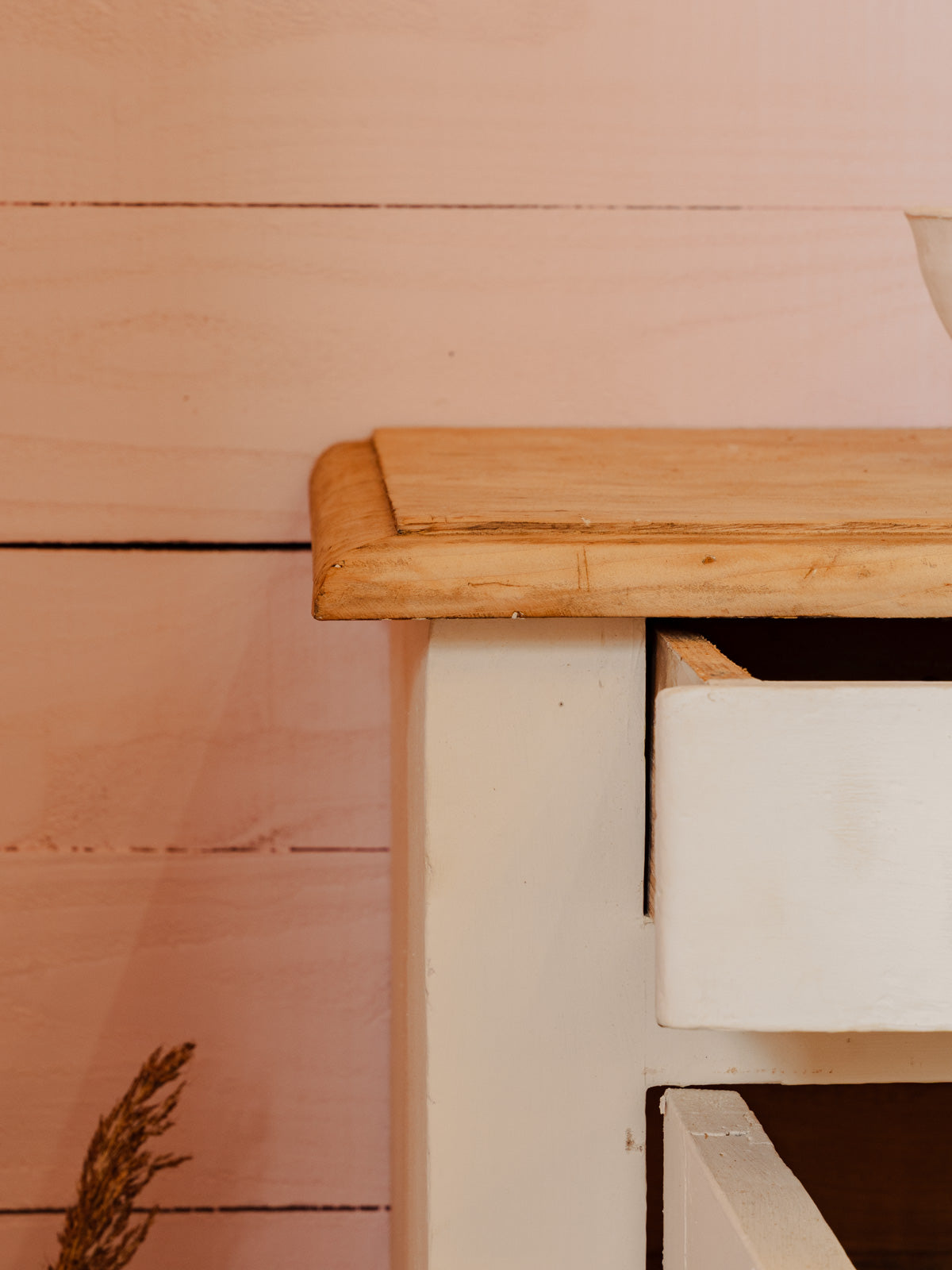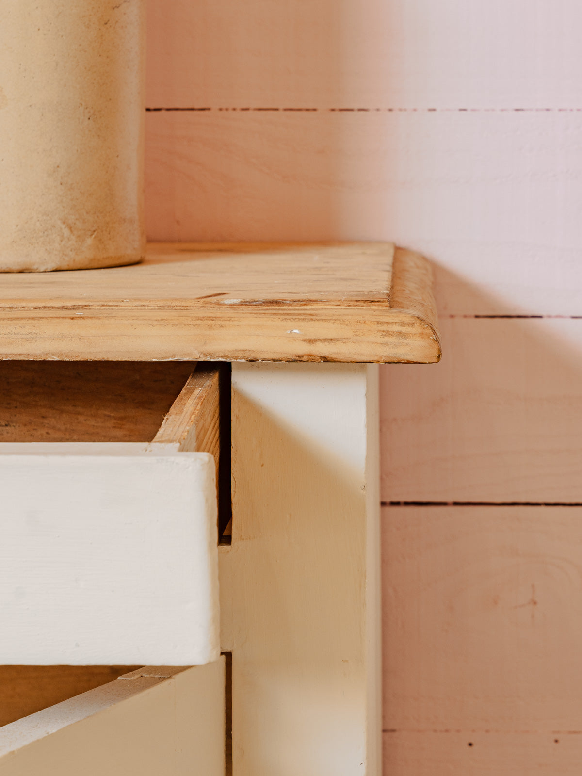 Adoptez ce buffet blanc ancien, restauré avec goût, qui marie lignes classiques et esprit contemporain. Son plateau brut en bois apporte une note naturelle contrastant avec les poignées en métal repeintes en blanc. Ses deux tiroirs et ses deux portes, ferment à clé et révèlent deux étagères intérieures pour un rangement organisé. Sa taille propose un plan de service idéal pour une salle à manger ou une entrée, et sa patine douce installe une ambiance chaleureuse et raffinée à une pièce.
