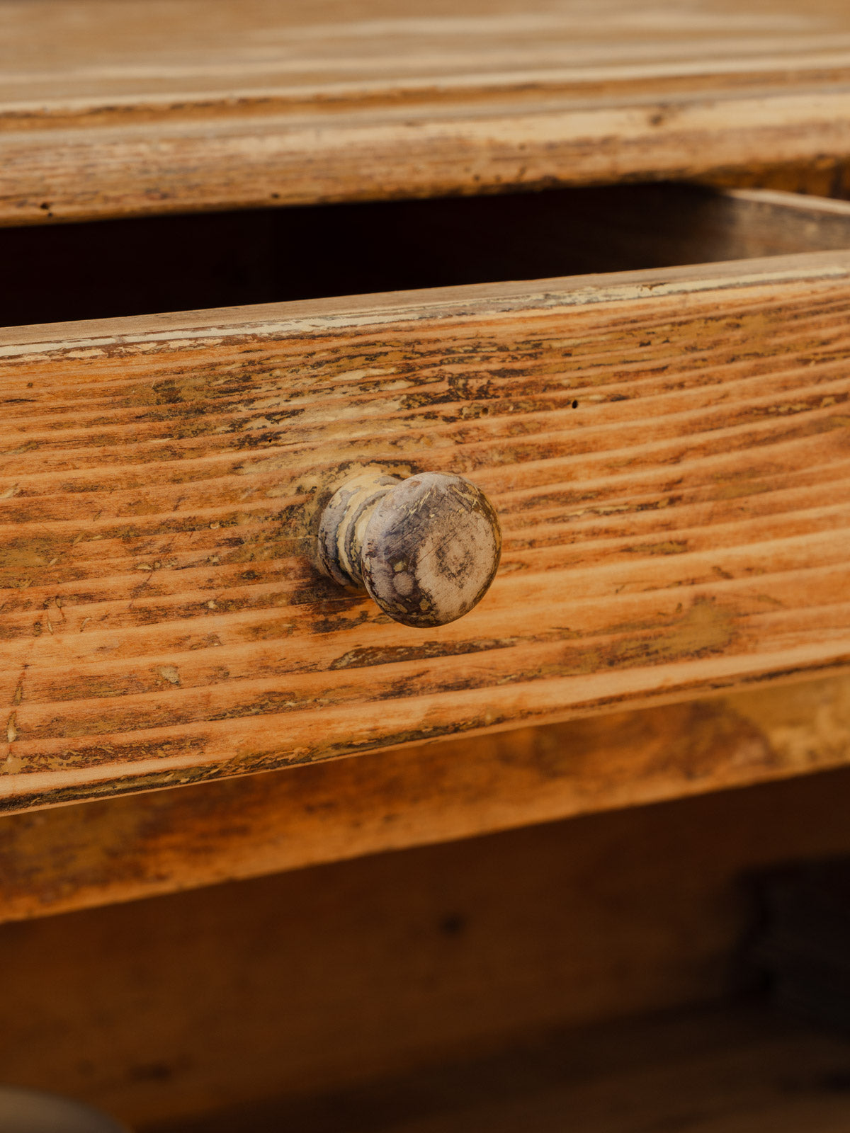 Sublimez votre intérieur avec ce buffet ancien de style parisien en bois brut qui révèle une belle texture et une patine naturelle. Deux tiroirs pratiques (dont un verrouillable avec sa clé) et deux portes fermant elles aussi à clé offrent un rangement discret et sécurisé. Son allure sobre et chaleureuse installe une ambiance authentique. Quelques marques d'usage qui font son authenticité.