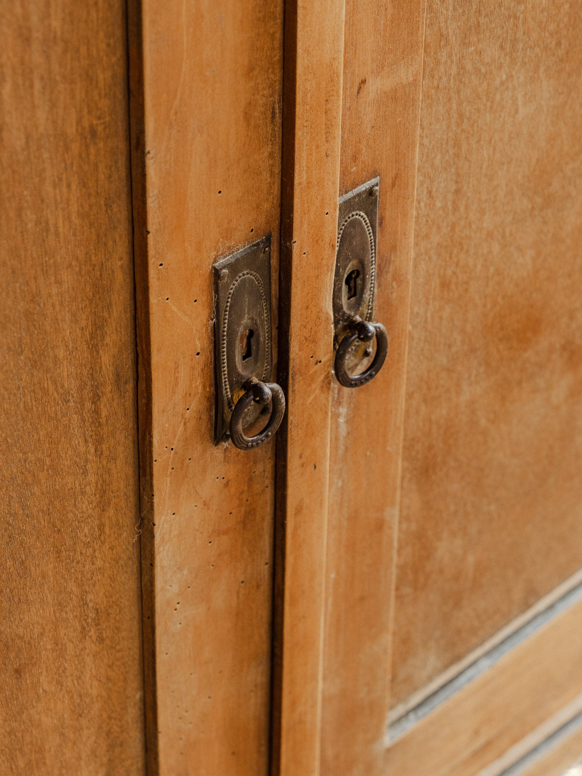 Apportez un buffet en bois à l'allure authentique avec deux portes soulignées par une serrure non fonctionnelle qui lui confère du caractère. Son intérieur offre une étagère pour vaisselle ou linge et un volume suffisant pour ajouter une seconde tablette selon vos besoins. Ses proportions s'intègrent naturellement dans une salle à manger ou une entrée, tandis que le bois réchauffe l'ambiance d'une note sobre et accueillante. Quelques traces du temps présentes.