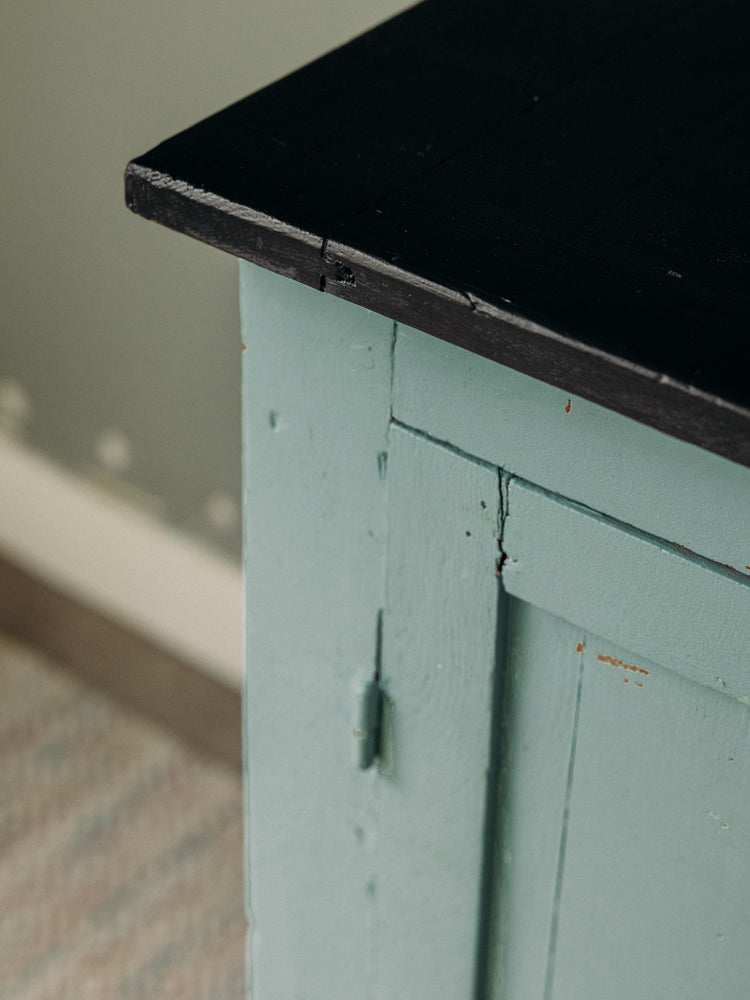 Apportez ce buffet bleu ciel au plateau noir en bois, dont le contraste de teintes souligne une silhouette élégante et contemporaine. Deux portes dissimulent un rangement généreux, tandis qu'une niche ouverte offre un espace dédié pour exposer vaisselle ou objets décoratifs. Le plateau solide accueille livres et plantes pour créer une mise en scène accueillante, et ses proportions mesurées s'adaptent aussi bien à une salle à manger qu'à une entrée.