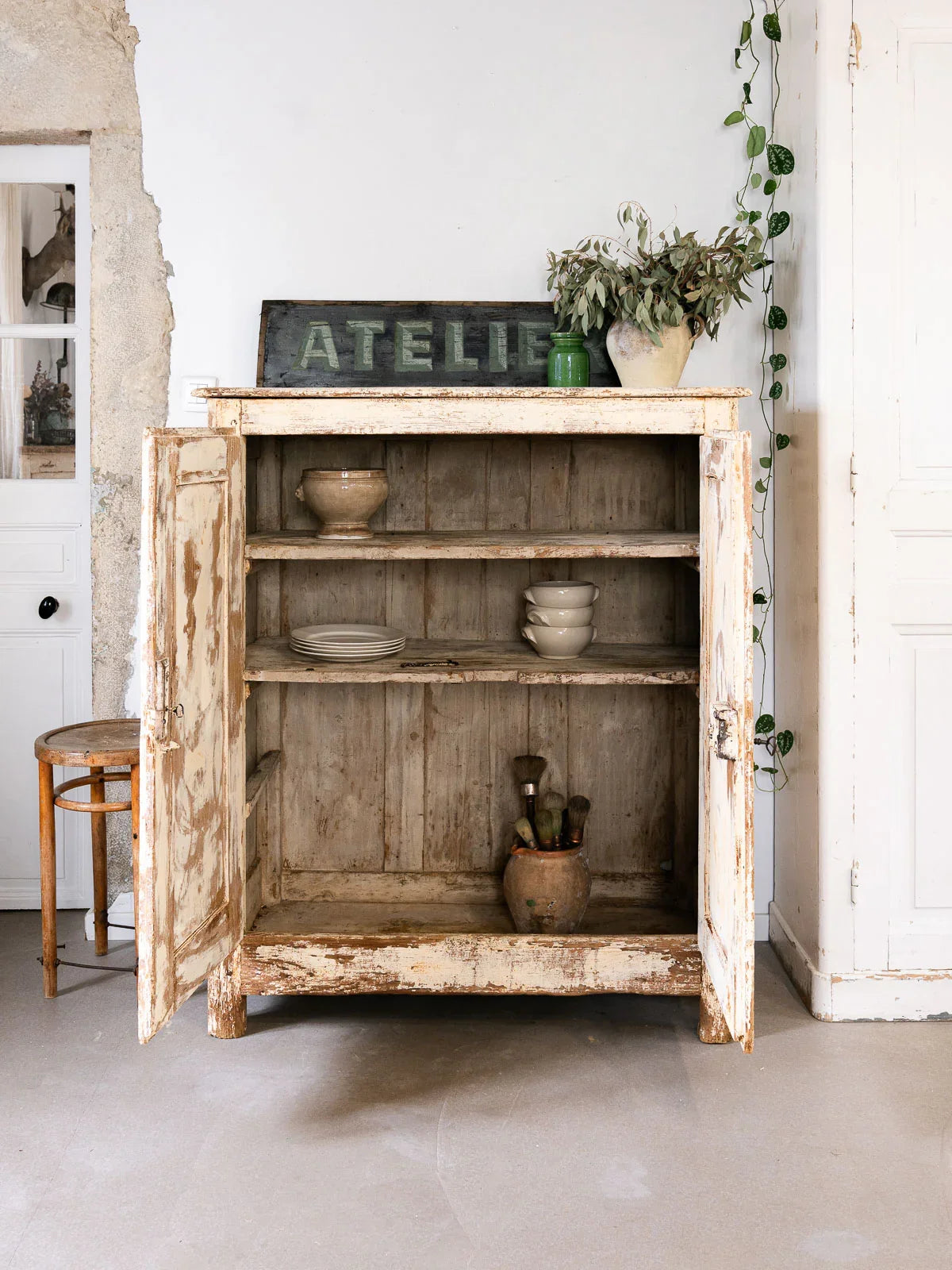 Offrez à votre intérieur ce buffet en chêne patiné beige, aux lignes sobres et à l'allure chaleureuse qui s'intègre à une salle à manger comme à une entrée. Sa façade équipée d'une serrure fonctionnelle avec clé garantit une fermeture sûre, tandis que ses deux étagères intérieures proposent un rangement optimisé pour vaisselle, linge de table ou objets du quotidien. La patine naturelle du bois raconte son histoire et apporte une douce élégance. Quelques traces du temps et d'usage du bois.