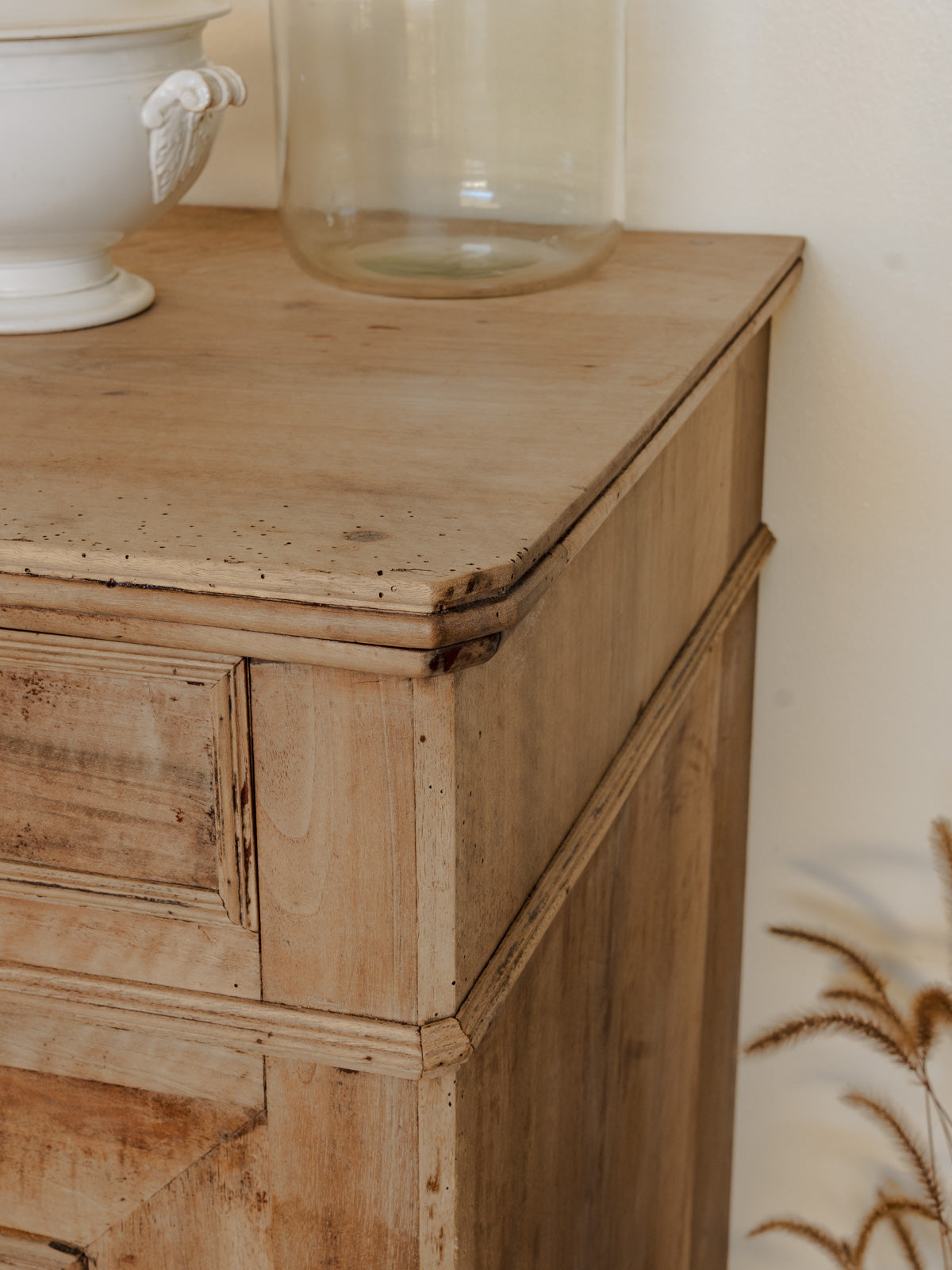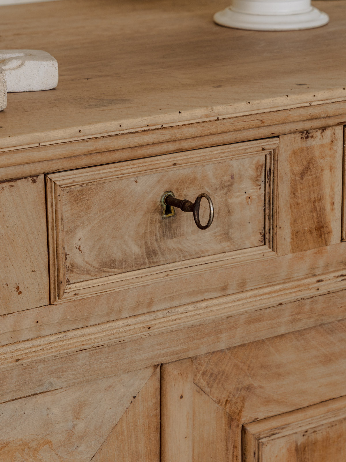 Sublimez votre intérieur avec ce buffet Louis-Philippe en noyer blond, aux lignes douces et au style intemporel. Sa partie haute organise le rangement grâce à trois tiroirs — deux généreux et un plus discret — tandis que la porte cache une étagère idéale pour la vaisselle ou le linge. Ses serrures opérationnelles et ses deux clés assurent une fermeture sûre, tandis que les poignées coquillage argentées apportent une touche raffinée. Son format s'intègre aussi bien dans une salle à manger que dans une entrée chaleureuse. Quelques traces du temps présentes.